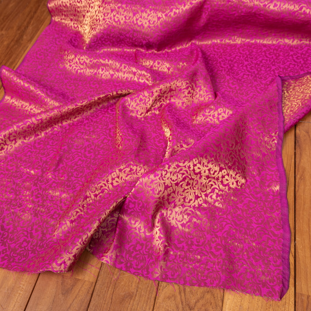 〔1m単位切り売り〕インドの伝統模様布 光沢感のあるブロケード生地に 美しい金糸の紋織 更紗〔幅約111cm〕 x 3個