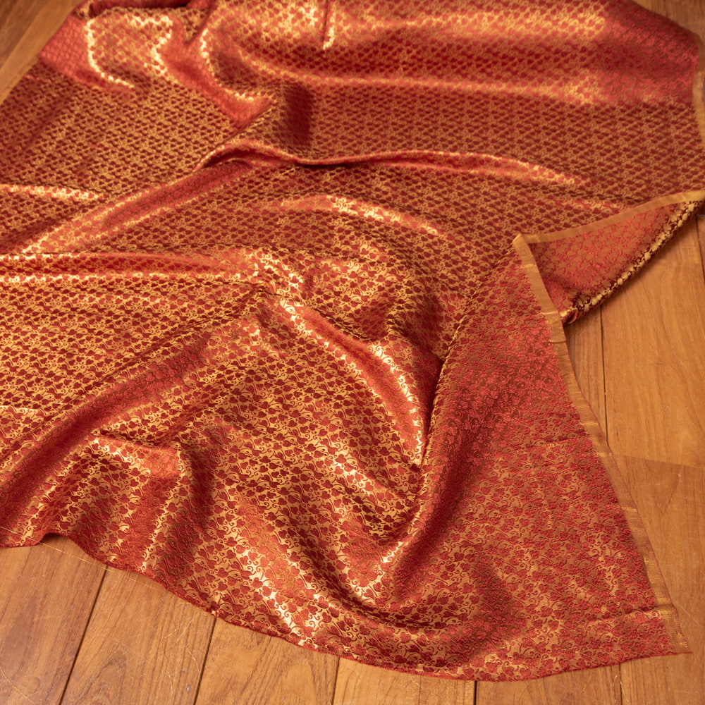 〔1m単位切り売り〕インドの伝統模様布 光沢感のあるブロケード生地に 美しい金糸の紋織 更紗〔幅約113cm〕 x 3個