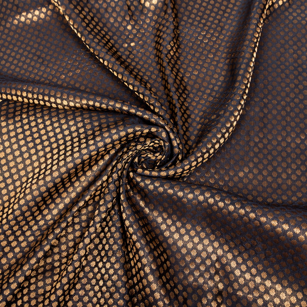 〔1m単位切り売り〕インドの伝統模様布 光沢感のあるブロケード生地に 美しい金糸の紋織 小花柄〔幅約109cm〕 x 3個