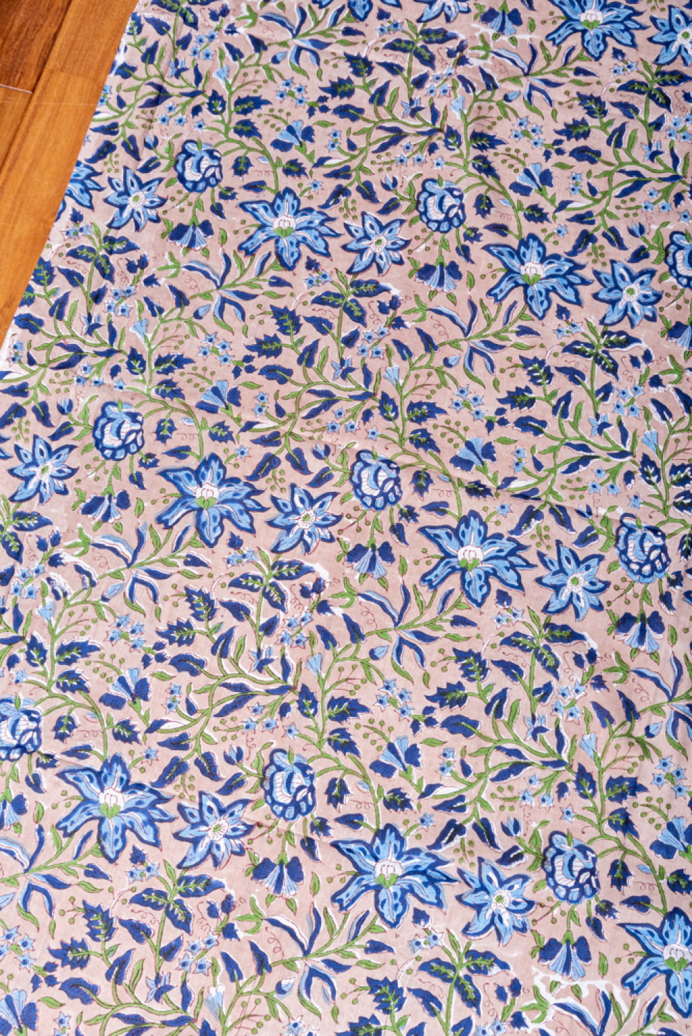 とってもかわいい生地がジャイプルからやってきました。どこかプロヴァンスなテイストも感じさせる、魅力的な色彩とデザイン。職人さんが全て手作りしており、インドらしい木版と鮮やかな色彩がきわだつ、インド綿100%のファブリックです。ナチュラルな風合いは、派手すぎずほどよく上品な雰囲気で、どんなお部屋にも馴染み、相性良くフィットしてくれそうです。