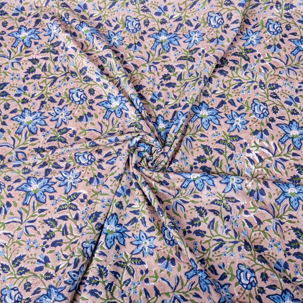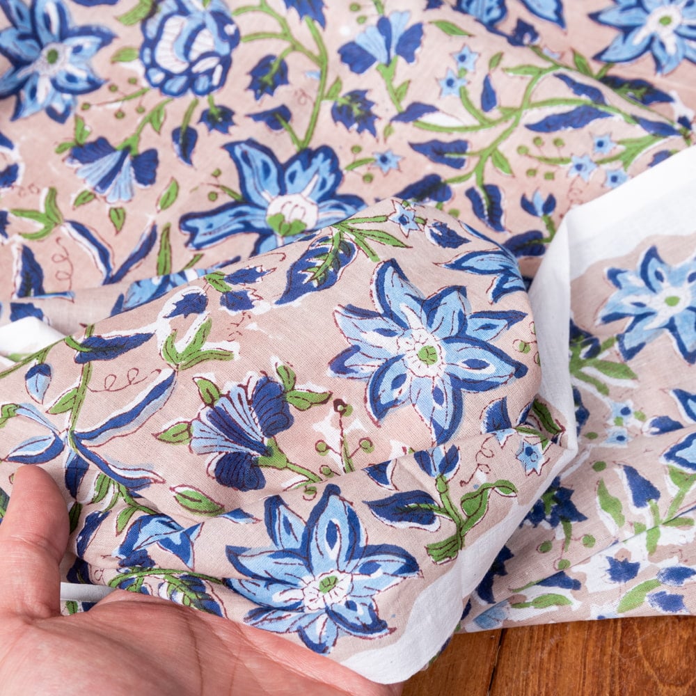 〔1m単位切り売り〕ジャイプル 職人手作り木版染め 色彩美しいボタニカルデザイン おしゃれ 生地 花柄 テーブルクロス 刺繍素材などへ〔約110cm〕 x 3個