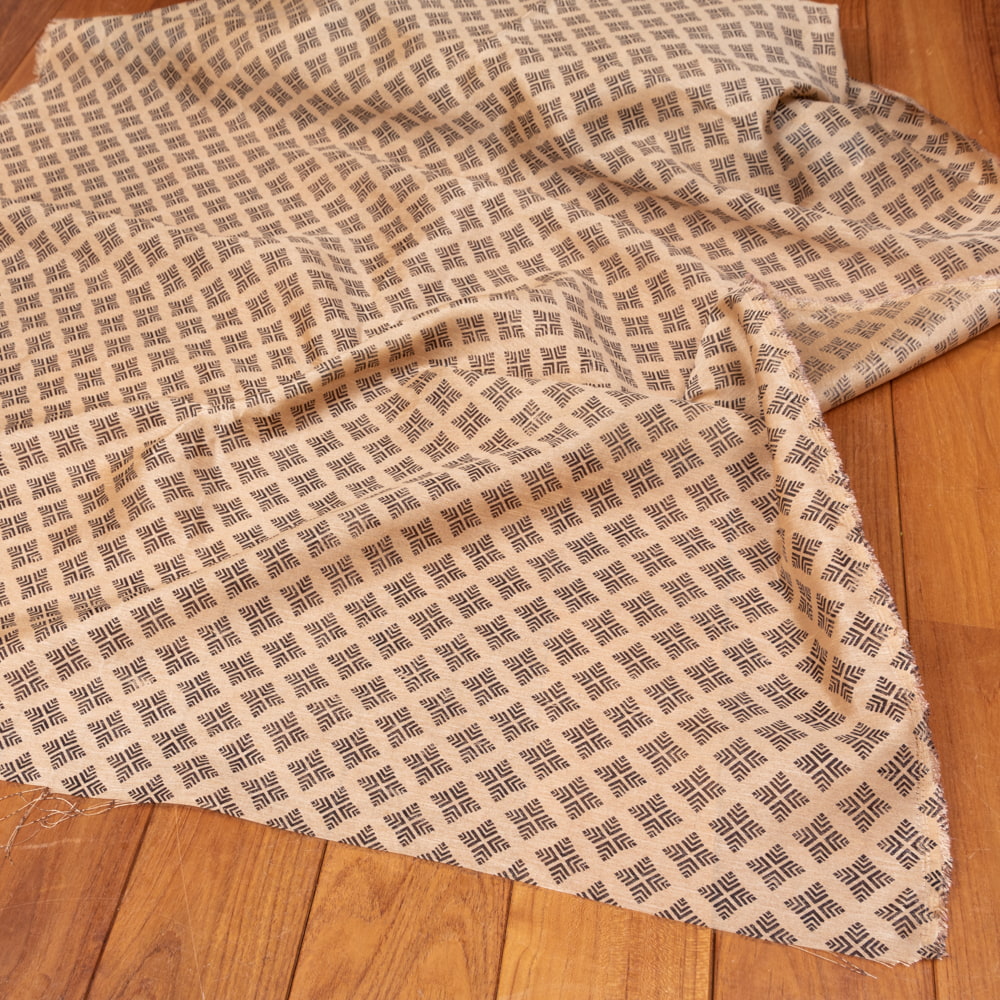 〔1m単位切り売り〕タッサーシルク風 インドのかわいい伝統模様生地〔約113cm〕ベージュ系 x 3個