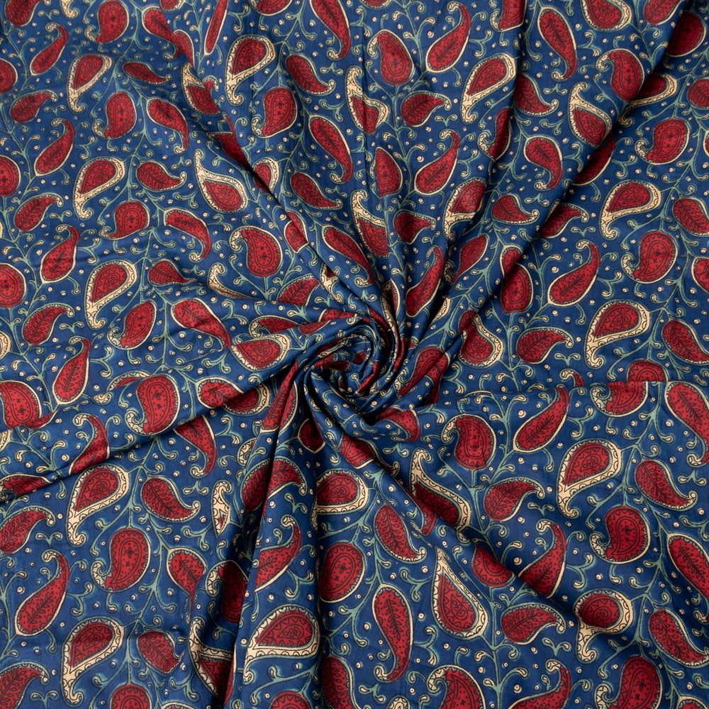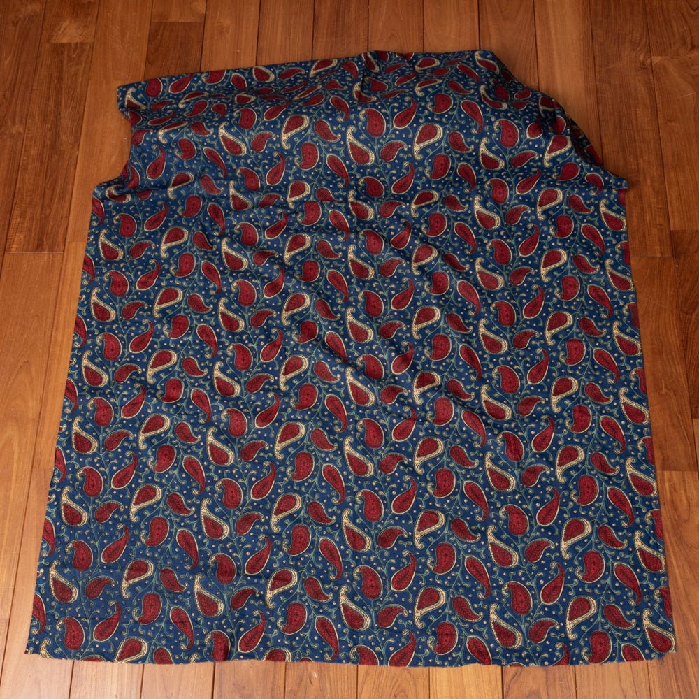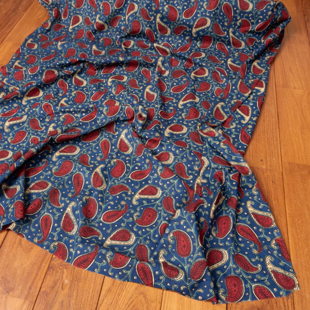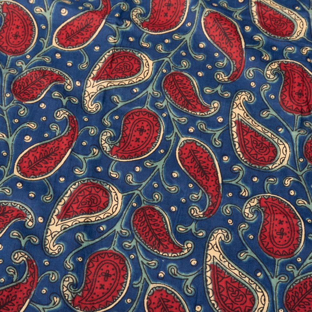 〔1m単位切り売り〕伝統息づく南インドから 昔ながらの更紗模様布〔約109.5cm〕ネイビー×レッド系 x 3個