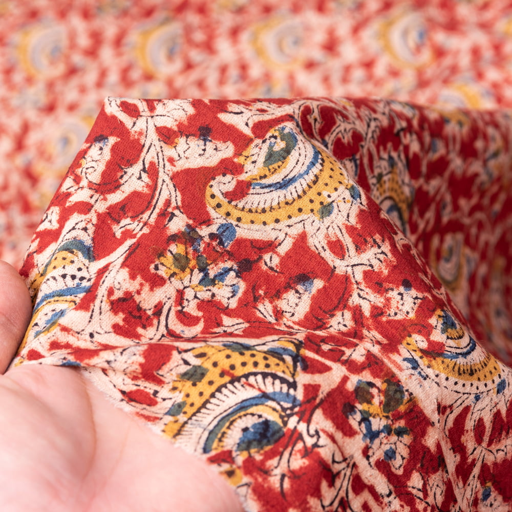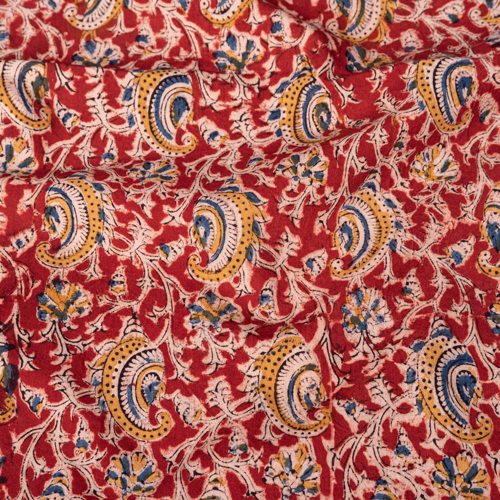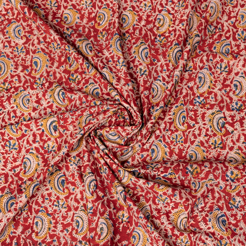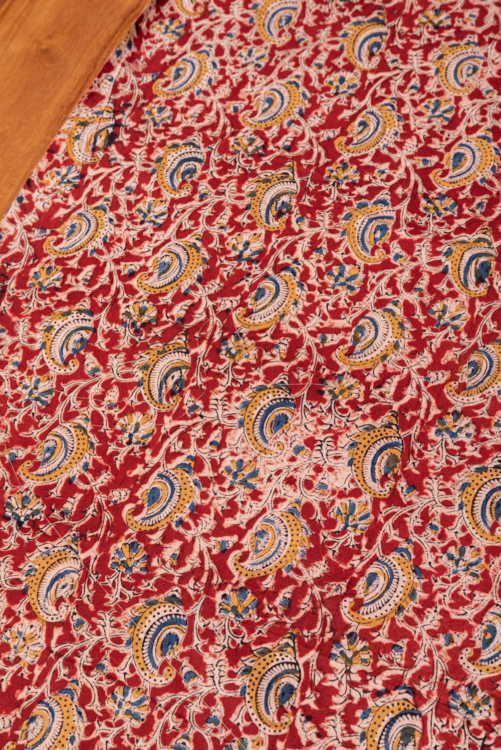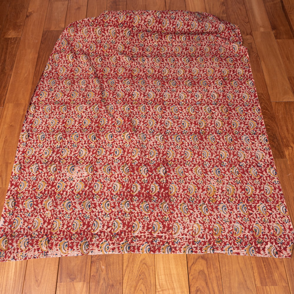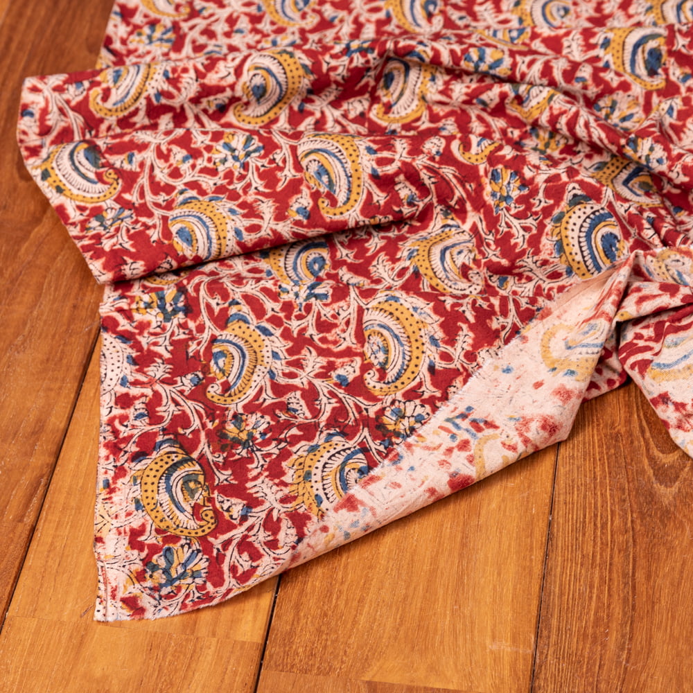〔1m単位切り売り〕伝統息づく南インドから 昔ながらの木版染め更紗模様布 - 赤系〔横幅:約116cm〕 x 3個