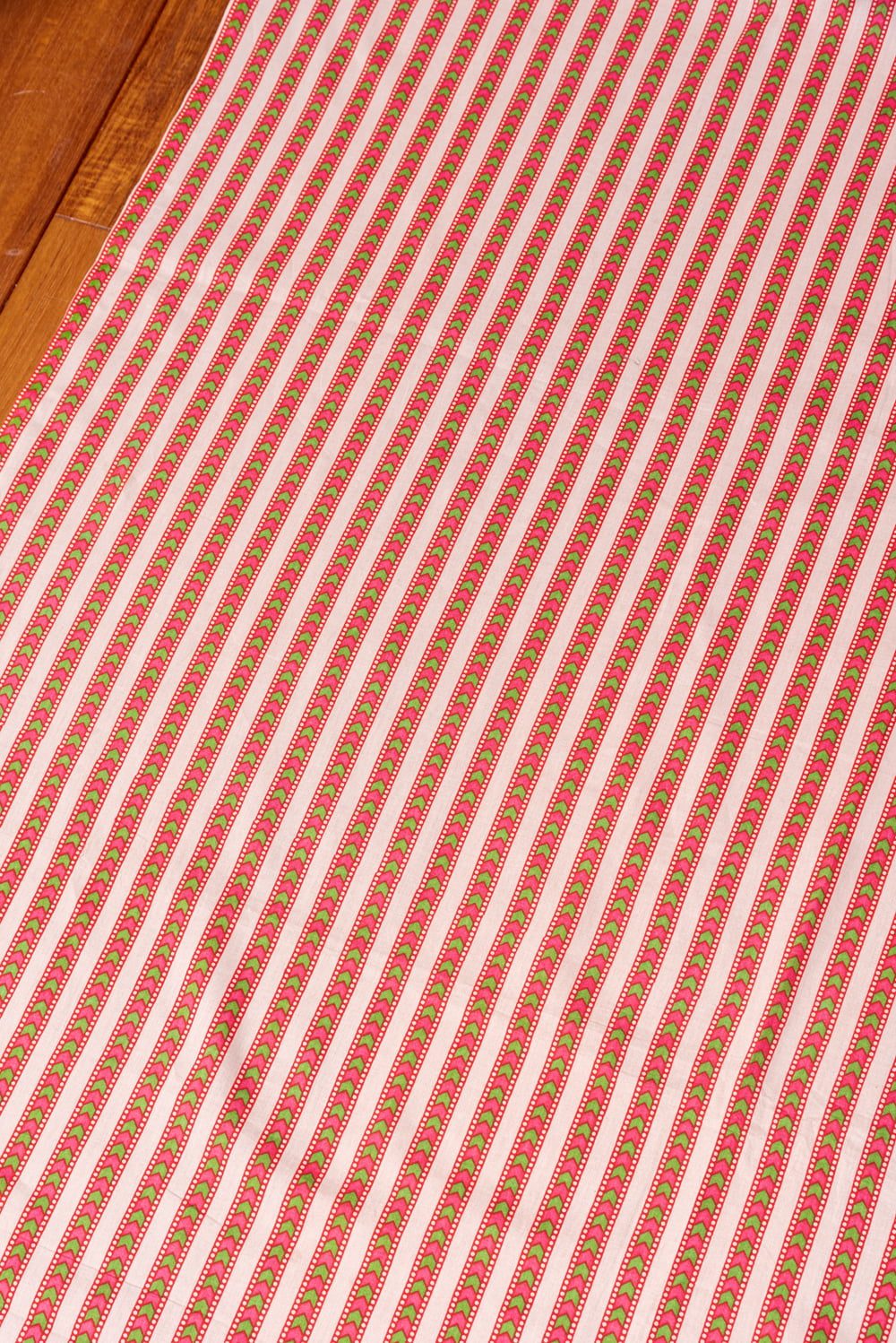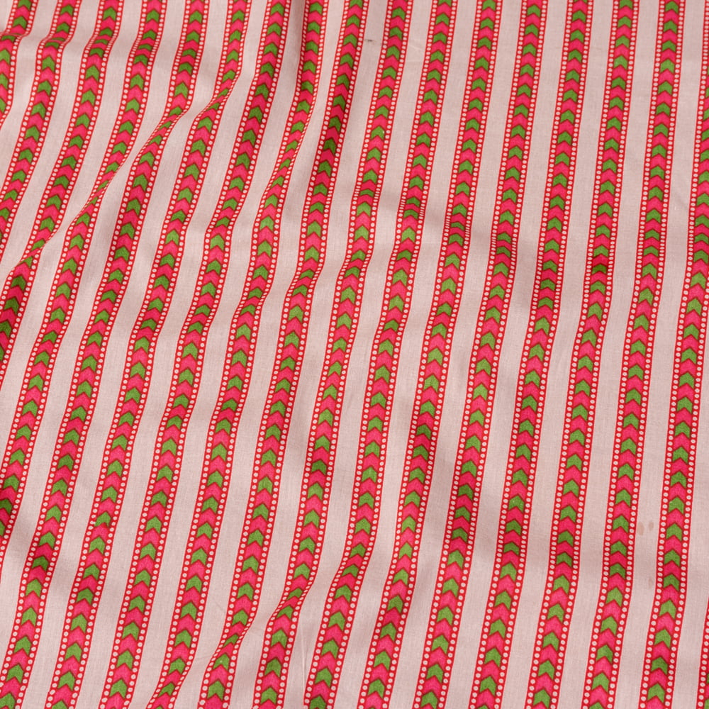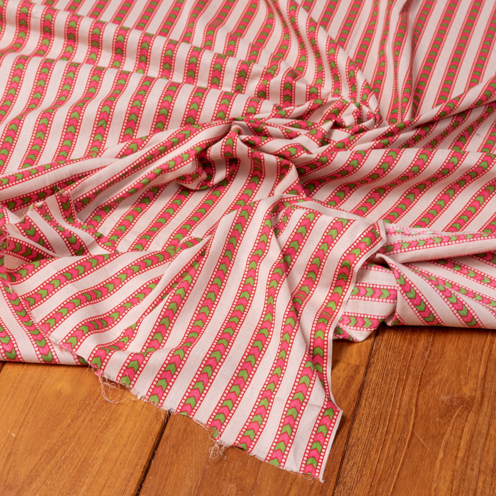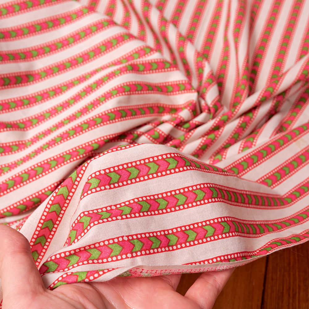 〔1m単位切り売り〕南インドのアローストライプ布〔幅約104.5cm〕 - ホワイト×ピンク系 x 3個