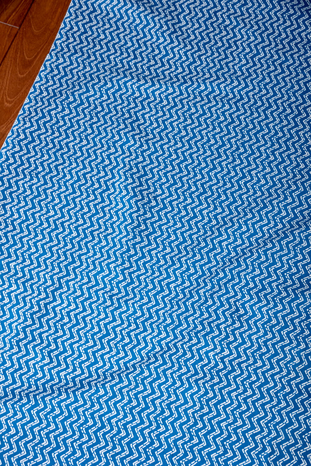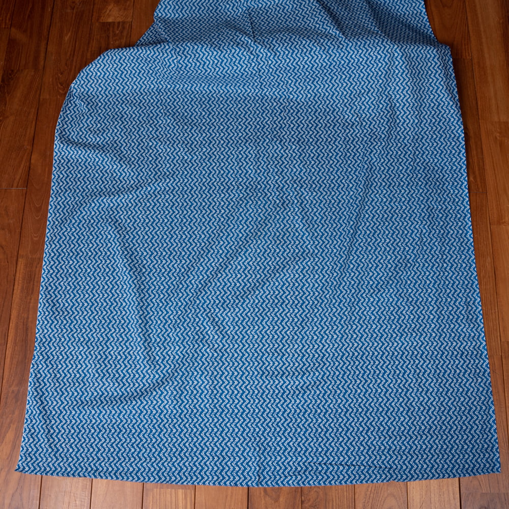 〔1m単位切り売り〕南インドのジグザグ模様 シェブロン・ストライプ布〔約106cm〕 - ブルー x 3個