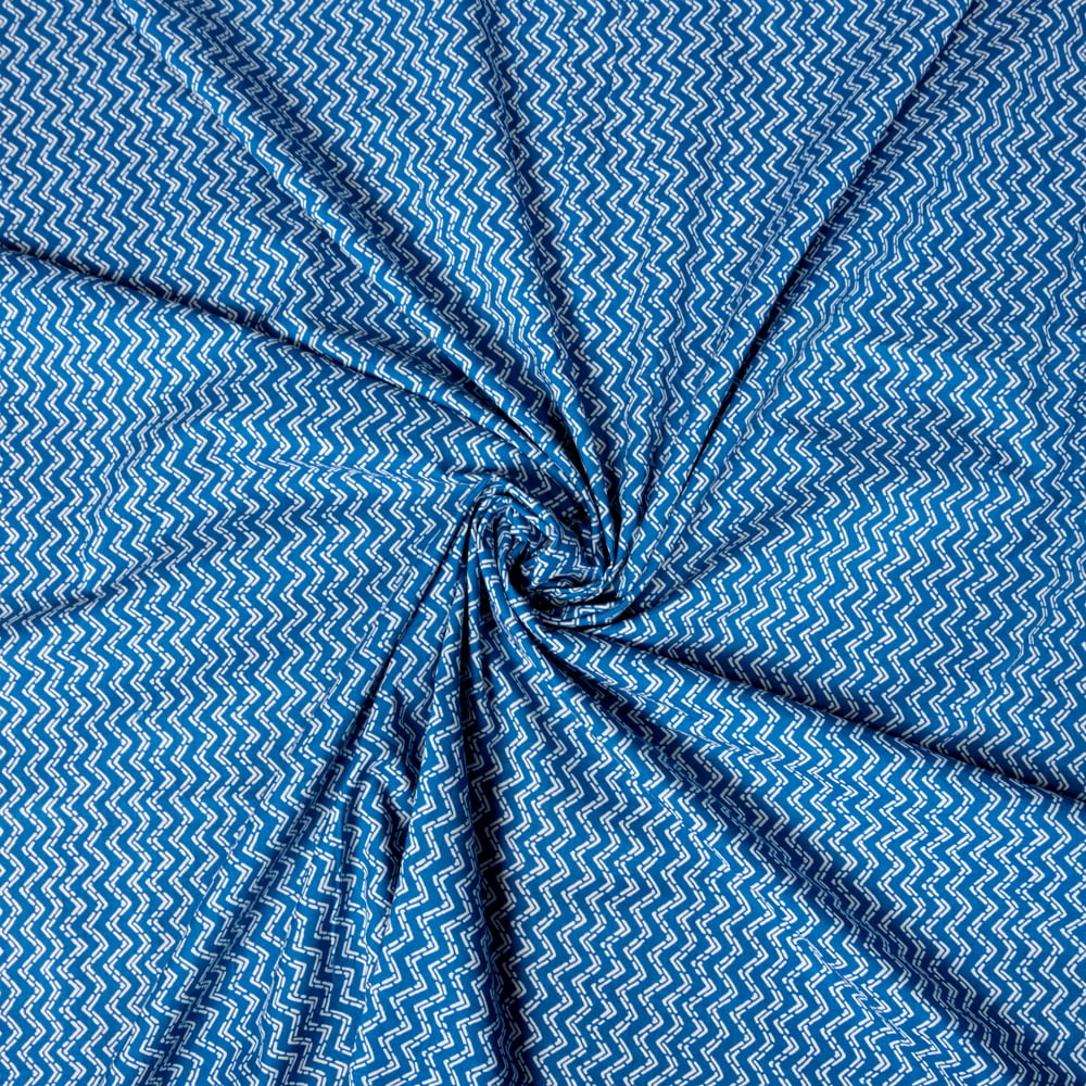 【3個セット】〔1m単位切り売り〕南インドのジグザグ模様 シェブロン・ストライプ布〔約106cm〕 - ブルーです。セットでお得になっています♪