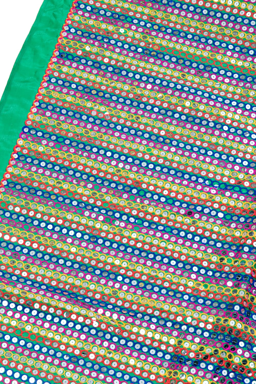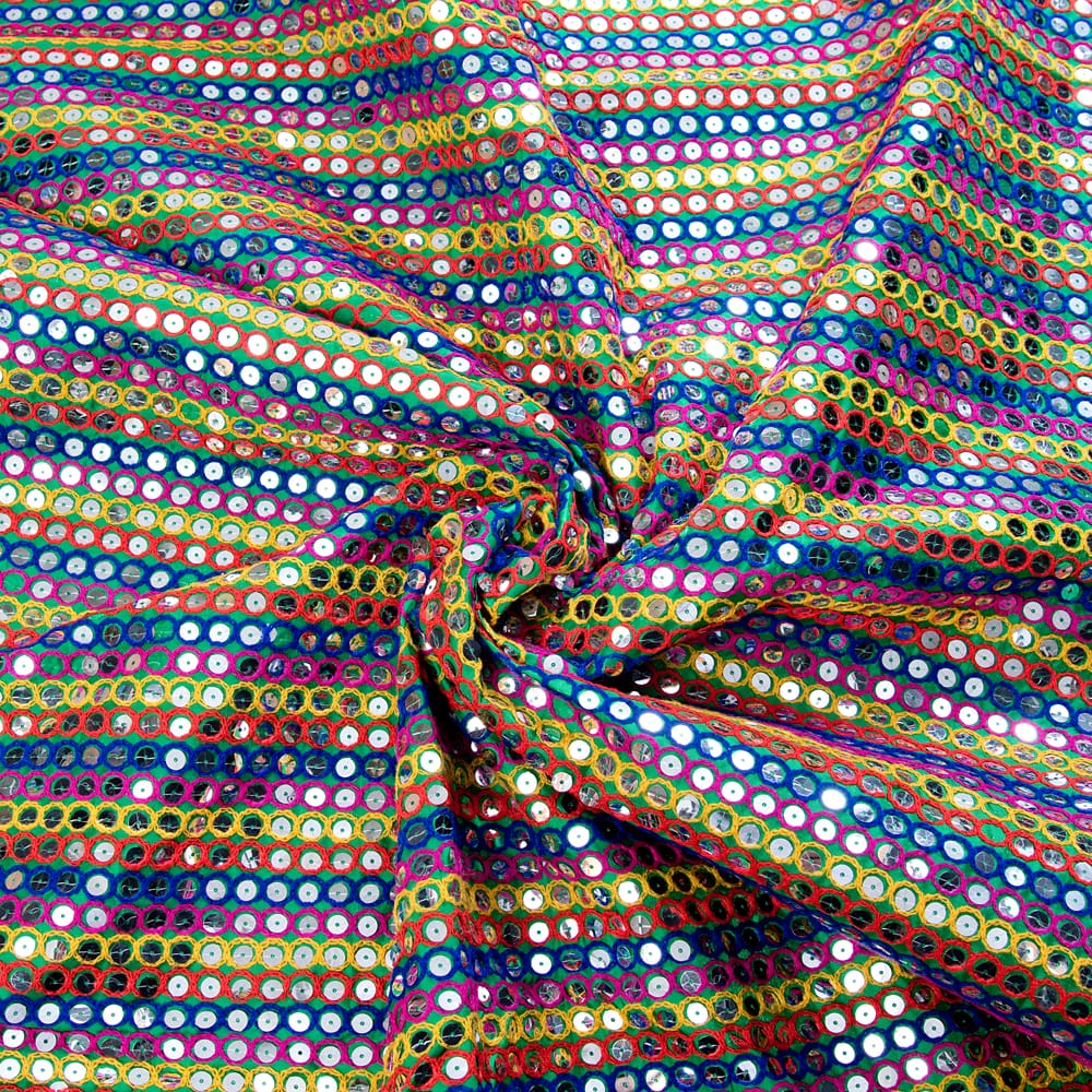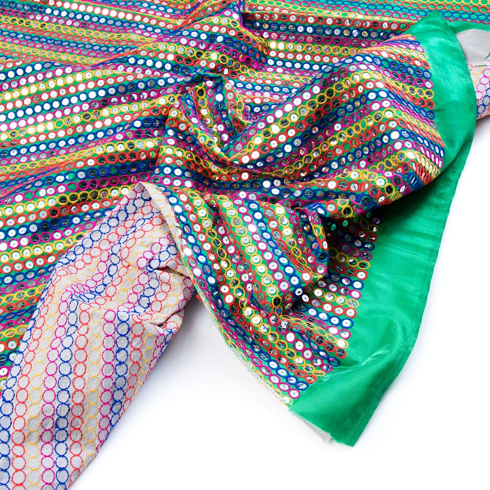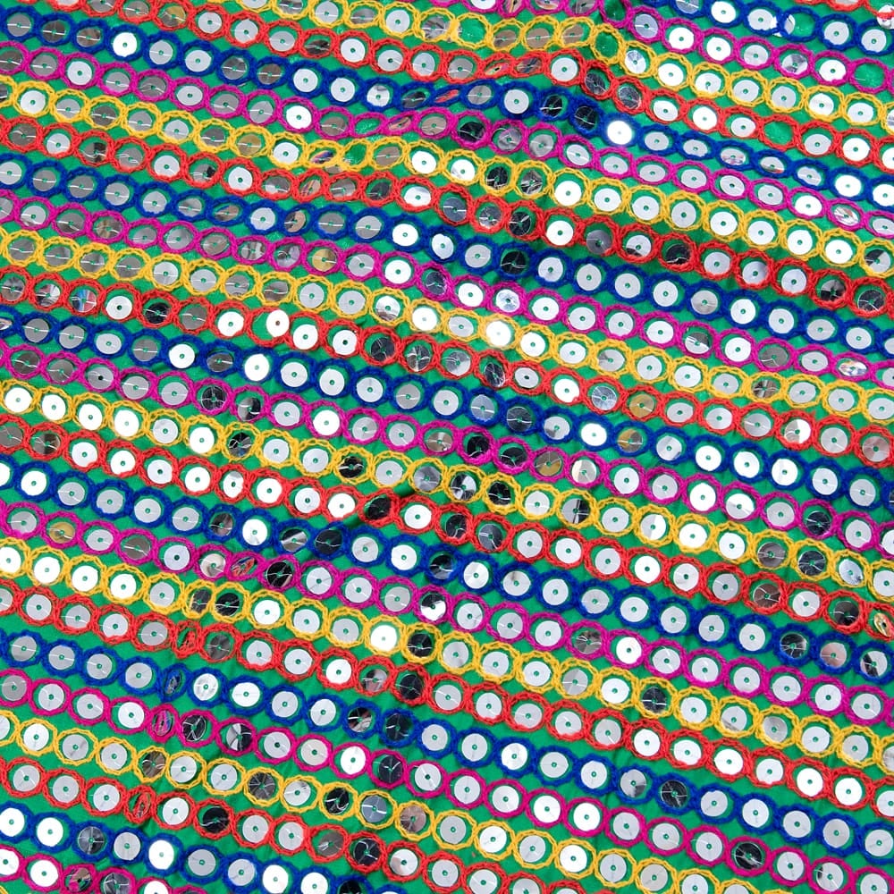 【5個セット】〔1m切単位り売り〕インドのスパンコールクロス布〔106cm〕 - グリーン