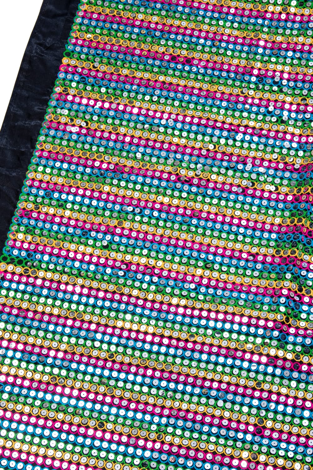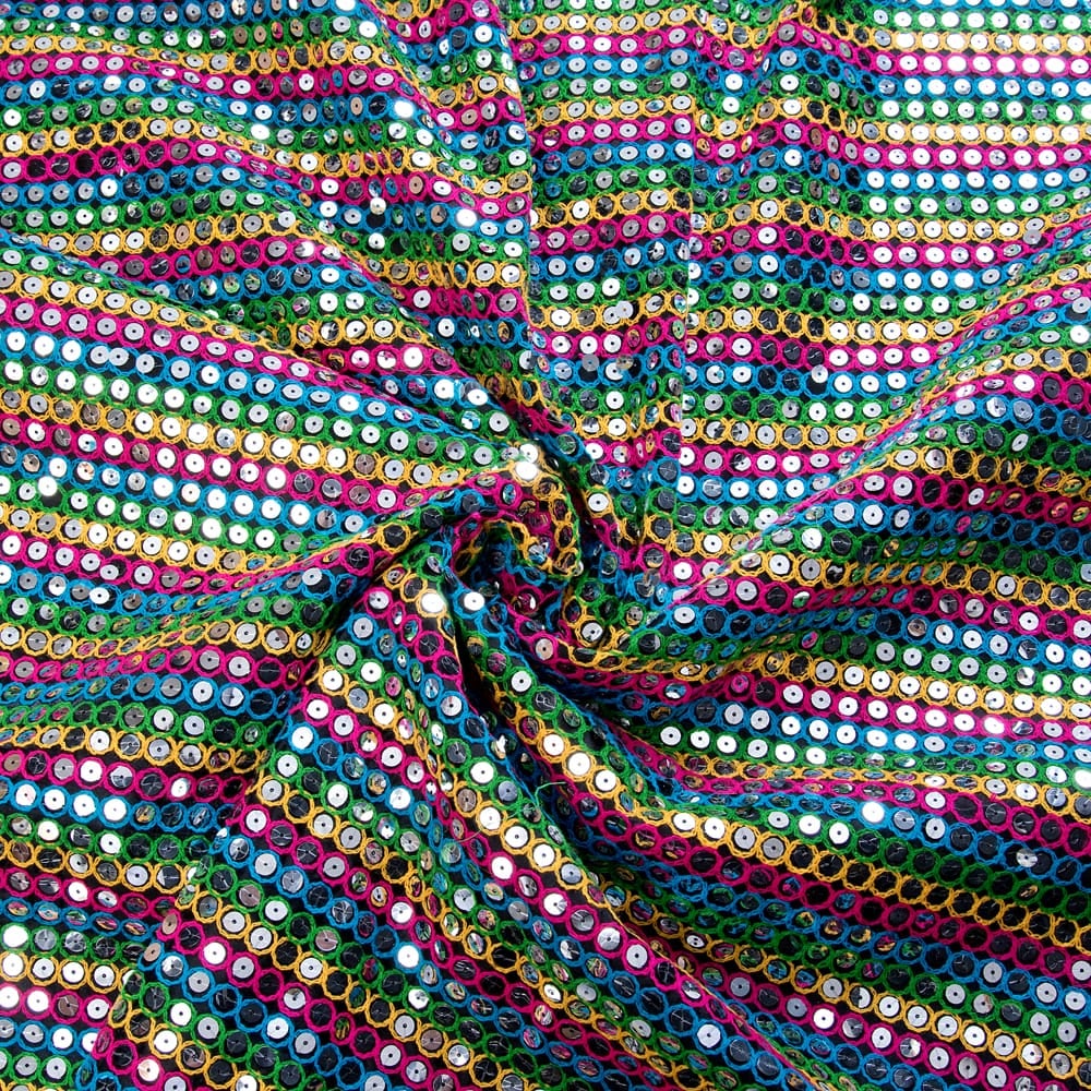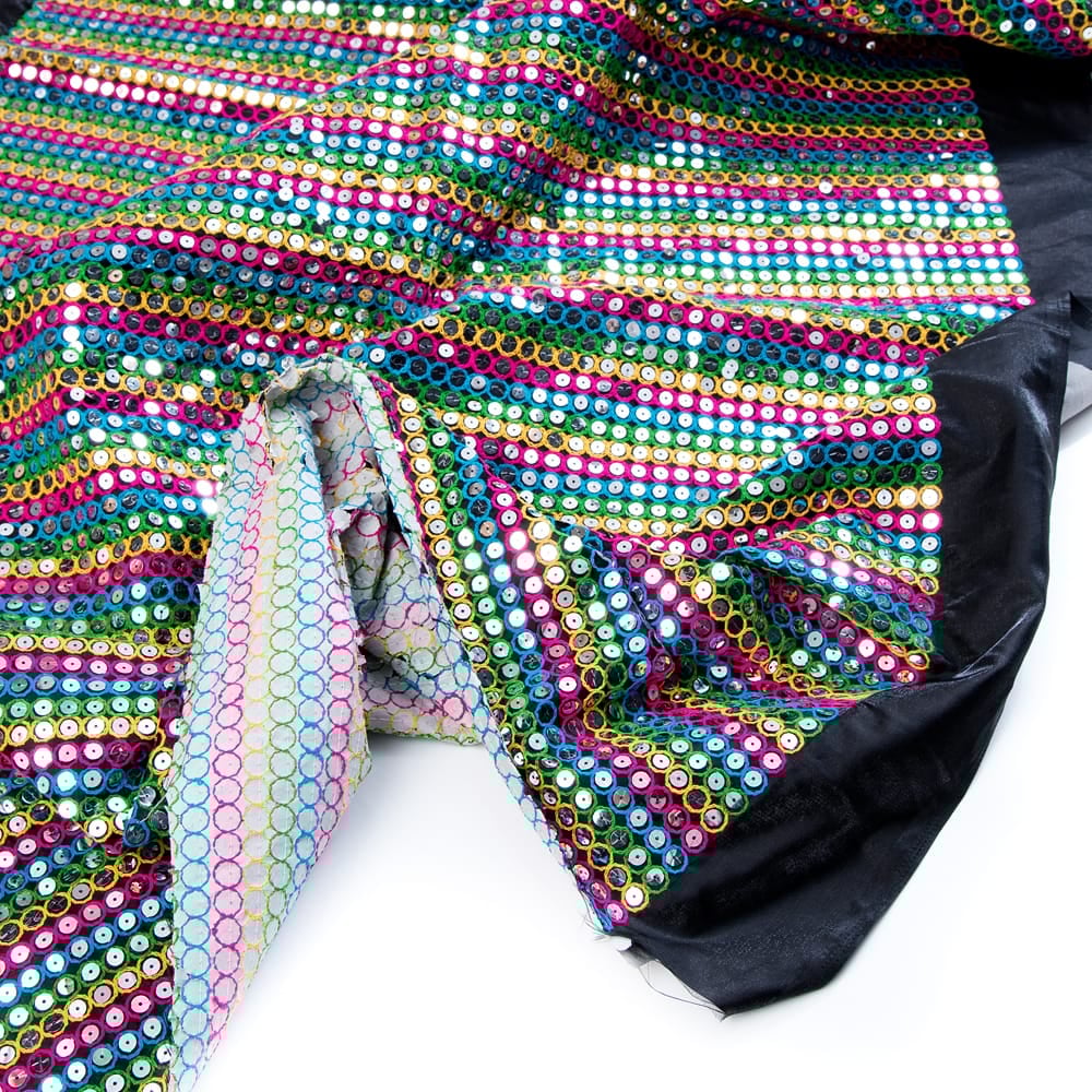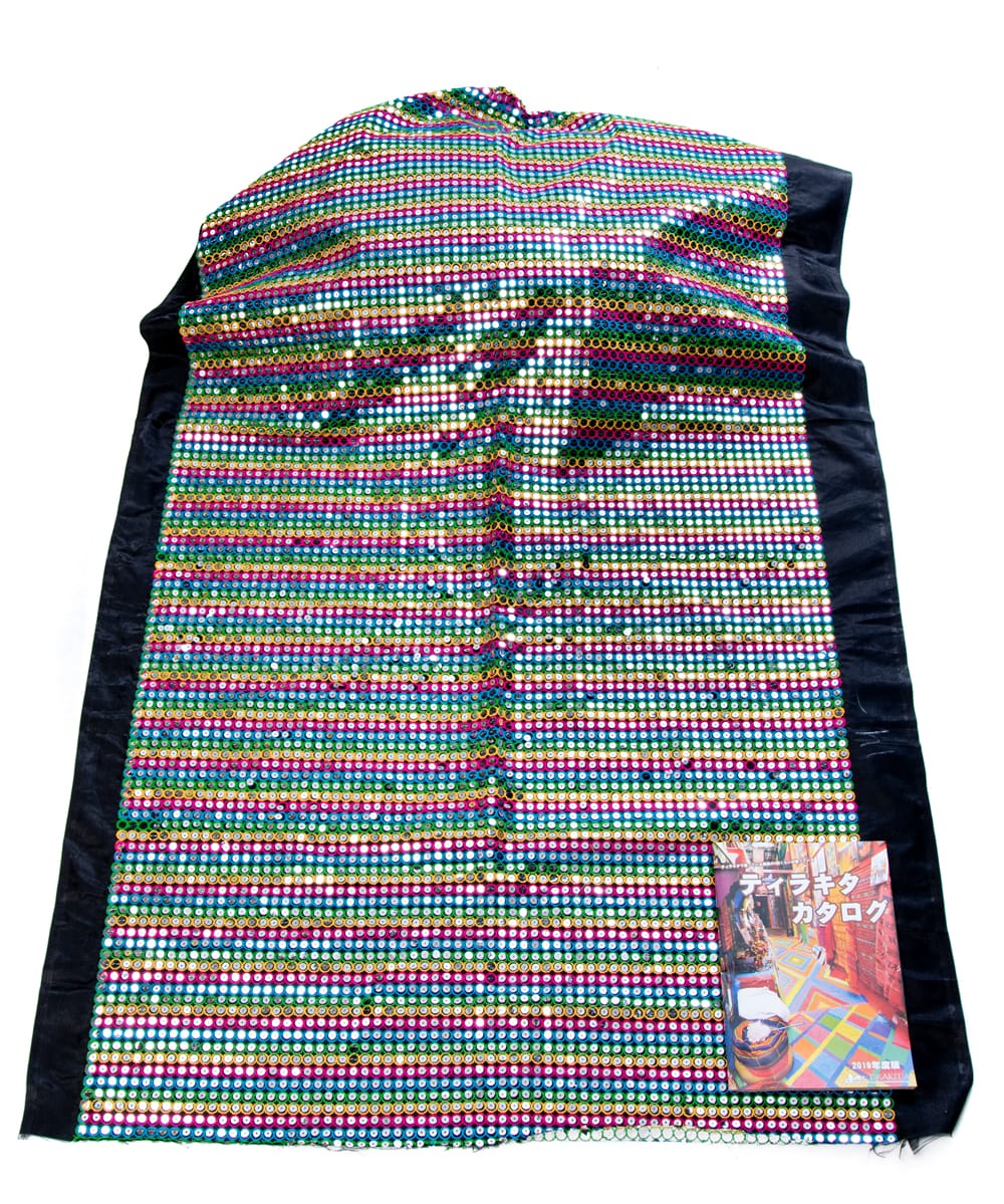 〔1m単位切り売り〕インドのスパンコールクロス布〔107cm〕 - ブラック×マルチカラー x 5個
