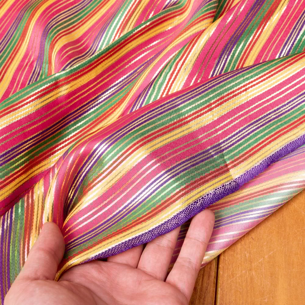 【5個セット】〔1m切単位り売り〕インドの伝統模様布 ボーダー ストライプ柄〔約103cm〕カッパー系