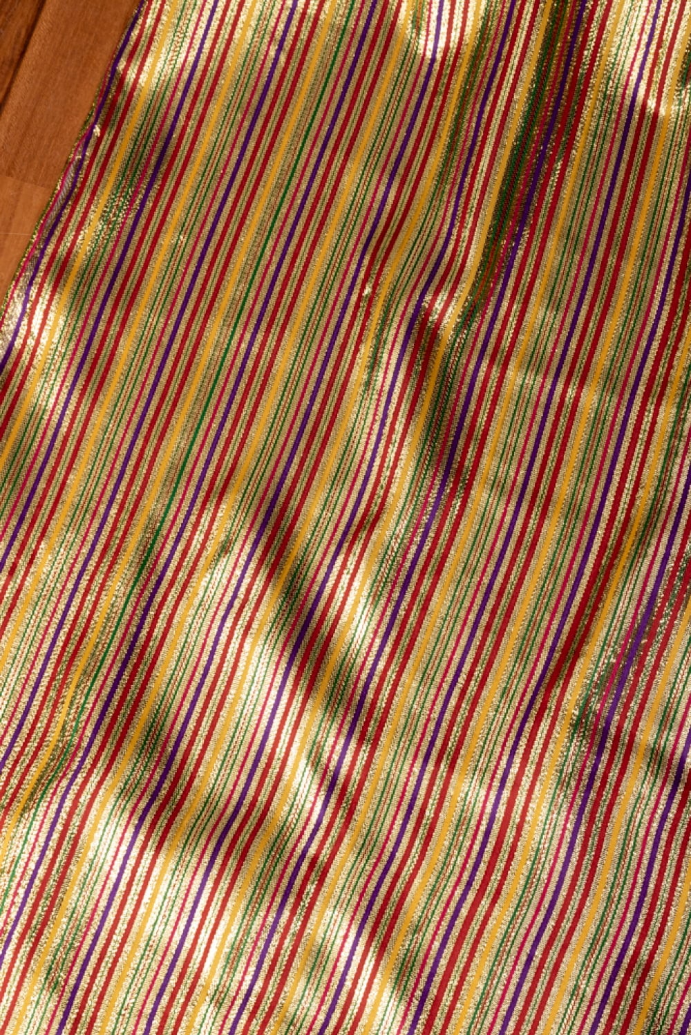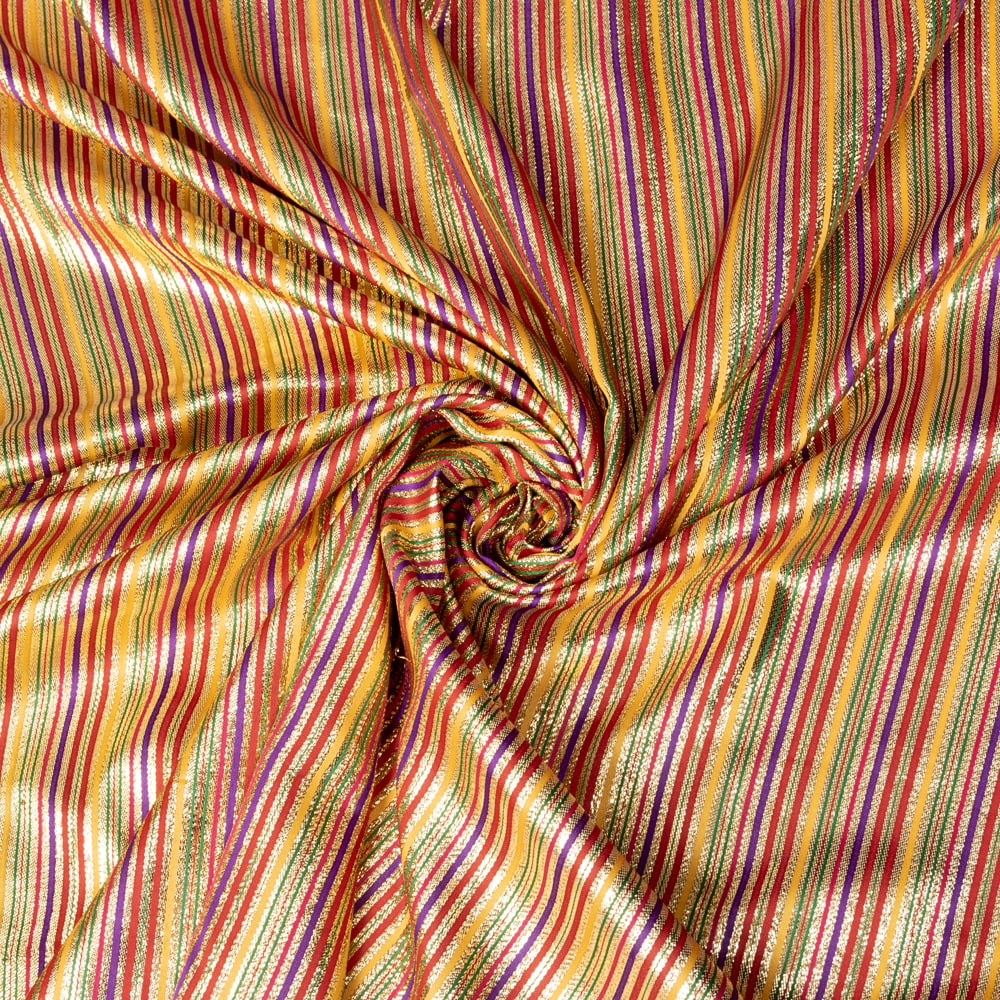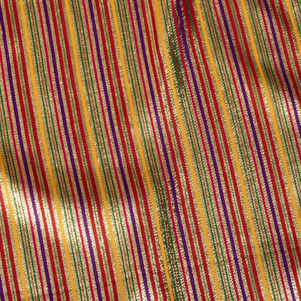 〔1m単位切り売り〕インドの伝統模様布 ボーダー ストライプ柄〔約103cm〕カラフル系 x 5個