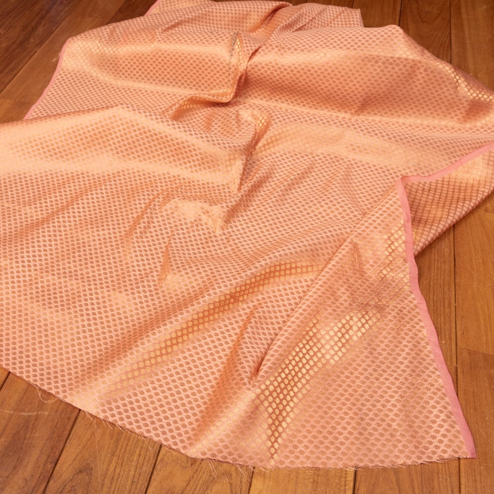 【5個セット】〔1m切単位り売り〕インドの伝統模様布 光沢感のあるブロケード生地 金糸〔約11.5cm〕薄ピンク系
