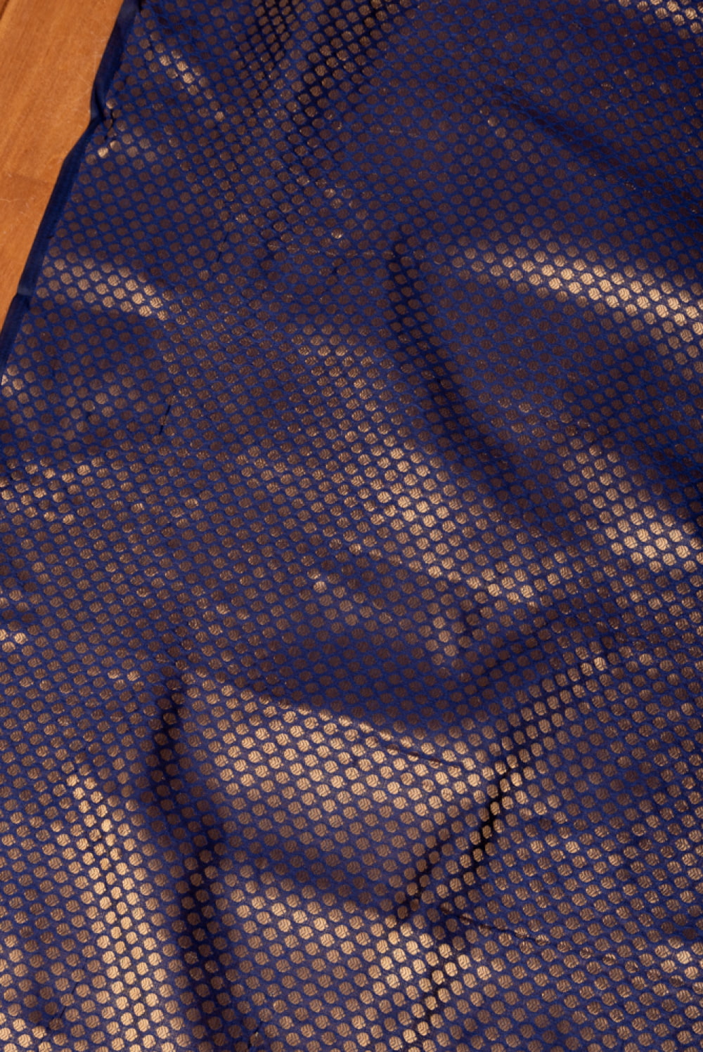 〔1m単位切り売り〕インドの伝統模様布 光沢感のあるブロケード生地 金糸〔約110cm〕ネイビー系 x 5個