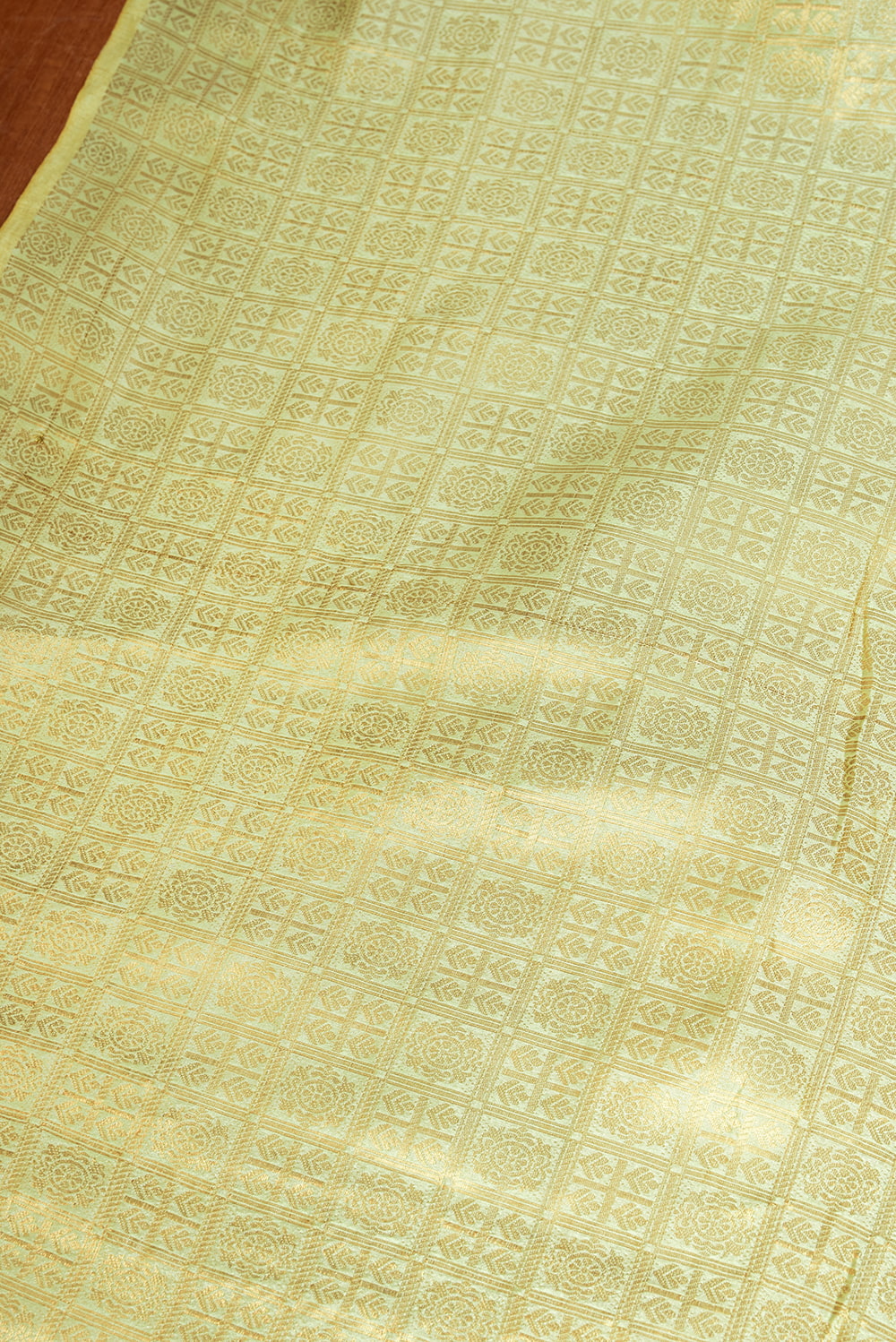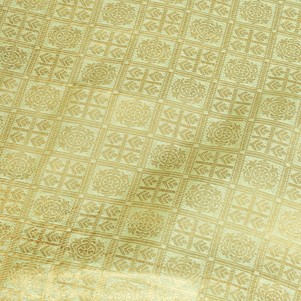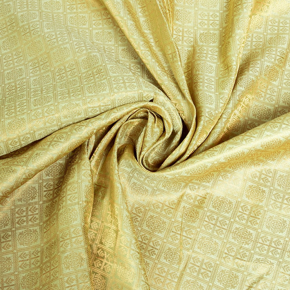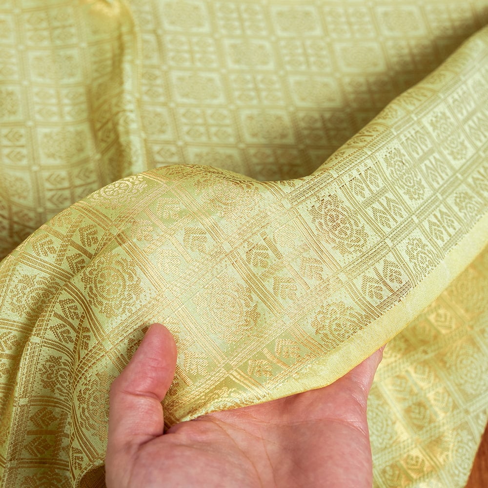 〔1m単位切り売り〕インドの伝統模様布 光沢感のあるブロケード生地 金糸〔約111cm〕薄黄緑系 x 5個