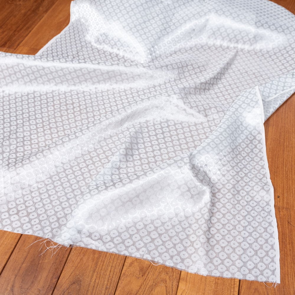 伝統的な紋様とインドらしい華やかな銀糸がマッチングした素敵な布です。手芸用の布としてはもちろんインテリア用のカバーや飾り布として様々な場所でお使いいただけます。ソファカバーやカーテン、等々色々な使いみちが考えられますね。陰影が美しいので、オリジナルのスカーフや壁飾りにしても素敵です。