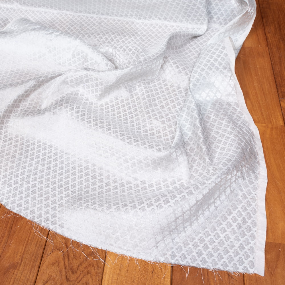 〔1m単位切り売り〕インドの伝統模様布 光沢感のあるブロケード生地〔約103cm〕ホワイト系 x 5個