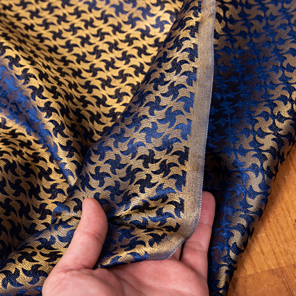 【5個セット】〔1m切単位り売り〕インドの伝統模様布 光沢感のあるブロケード生地に 美しい金糸の紋織 手裏剣〔幅約115cm〕