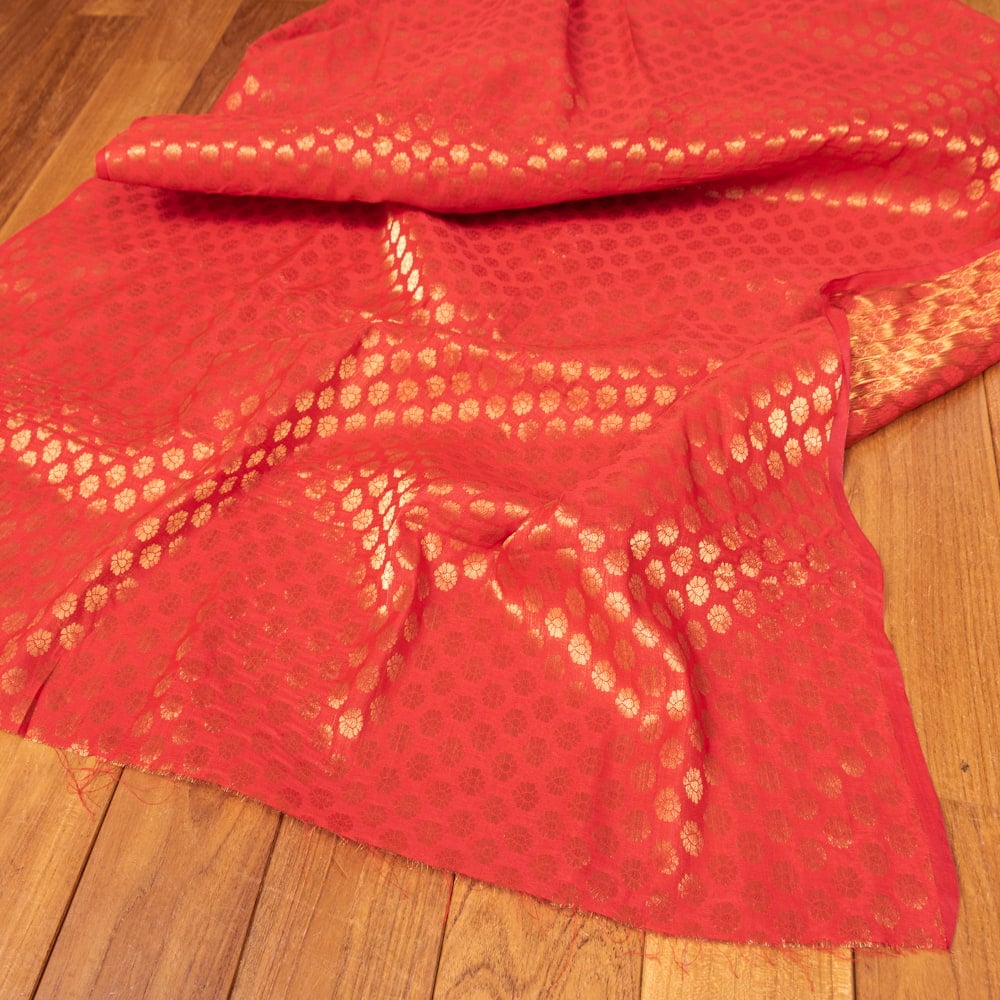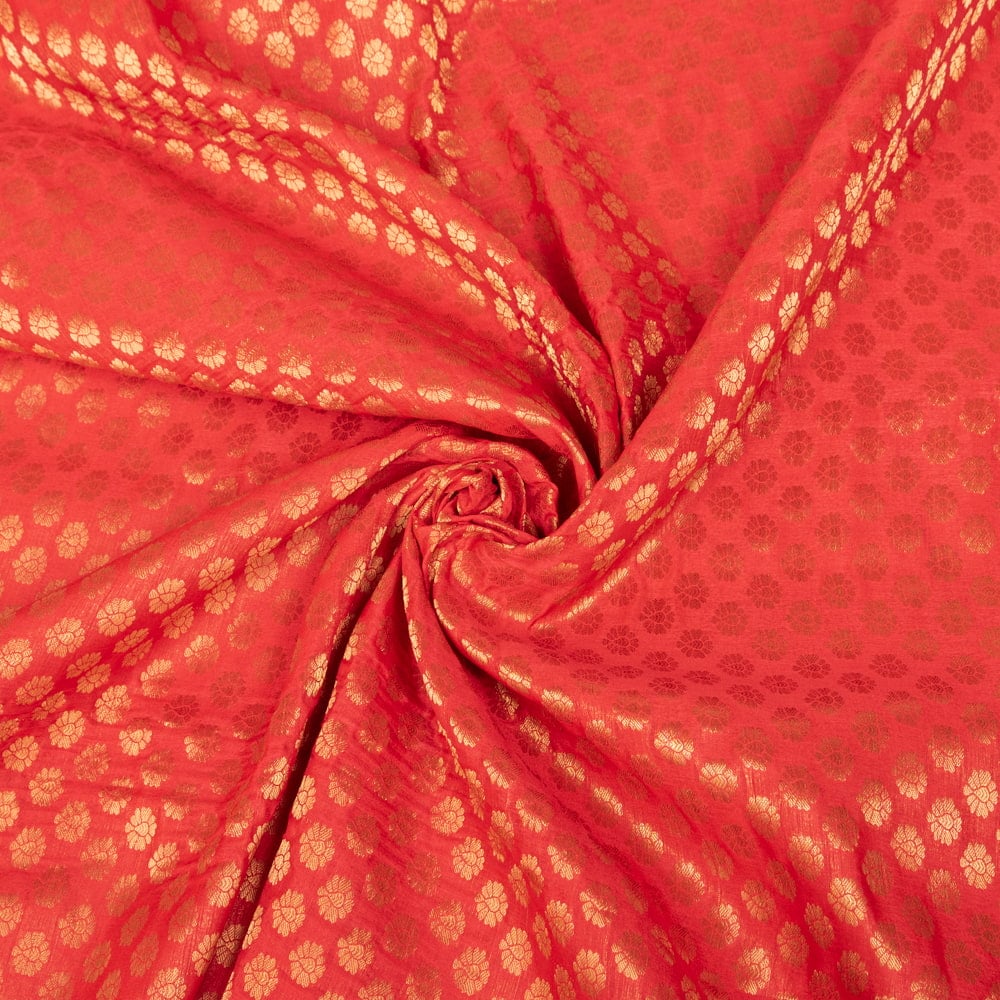 【5個セット】〔1m切単位り売り〕インドの伝統模様布 光沢感のあるブロケード生地に 美しい金糸の紋織 小花柄〔幅約107cm〕