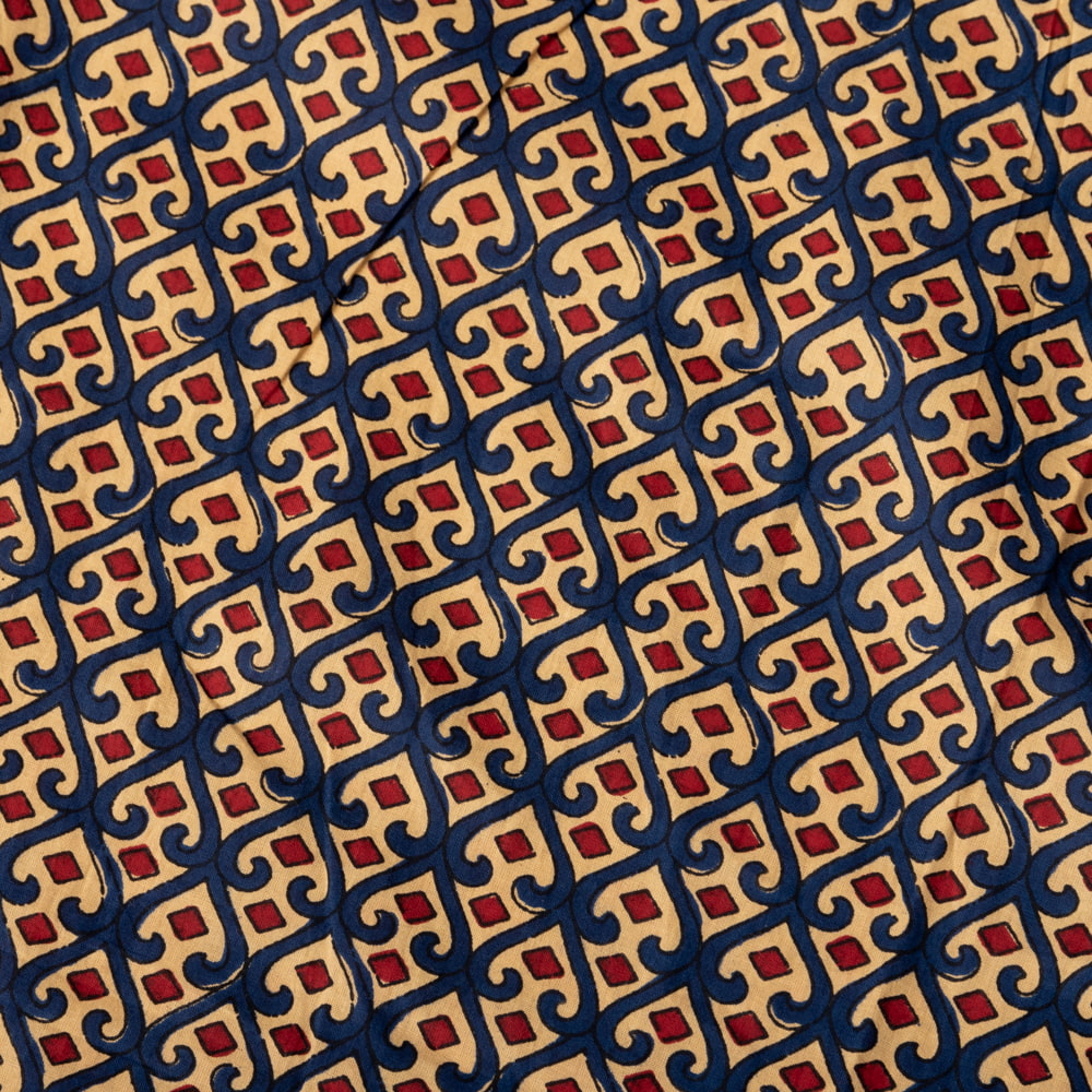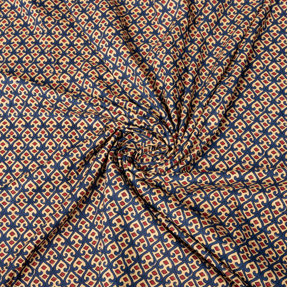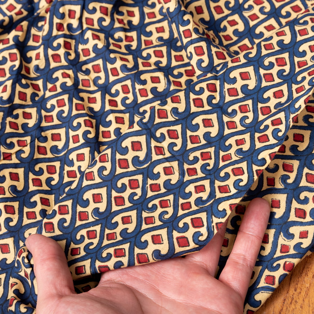 〔1m単位切り売り〕伝統息づく南インドから 昔ながらの更紗模様布〔約109cm〕ブルー×レッド系 x 5個