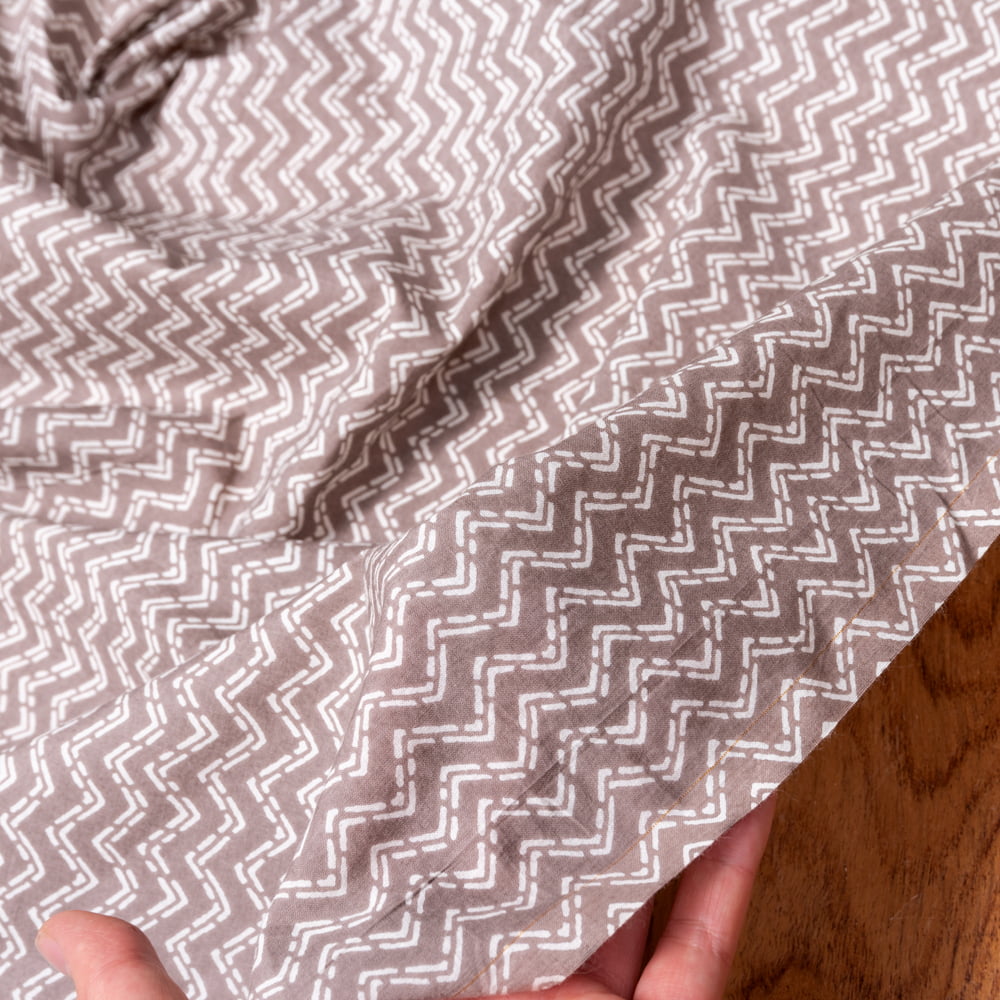〔1m単位切り売り〕南インドのジグザグ模様 シェブロン・ストライプ布〔幅約106cm〕 - グレー×ホワイト系 x 5個