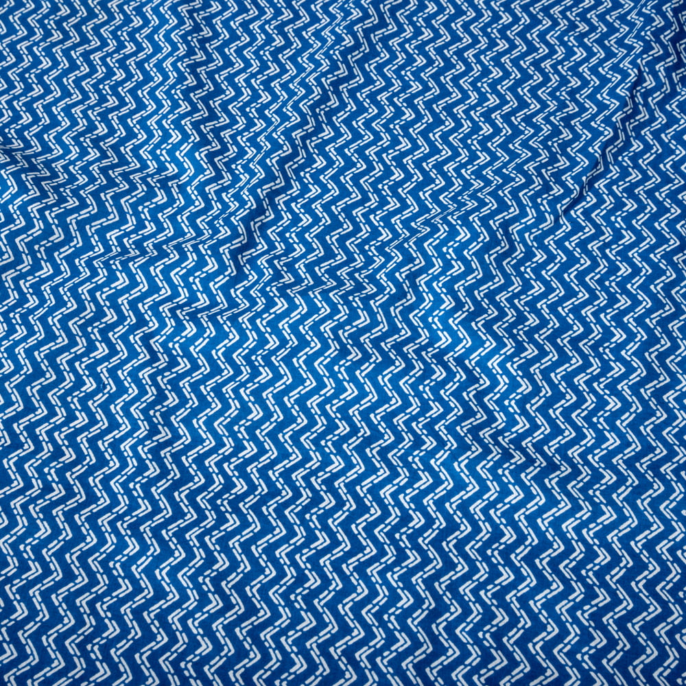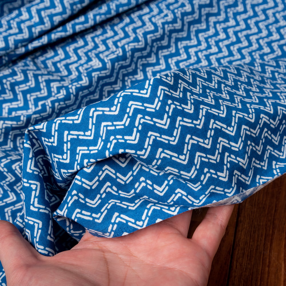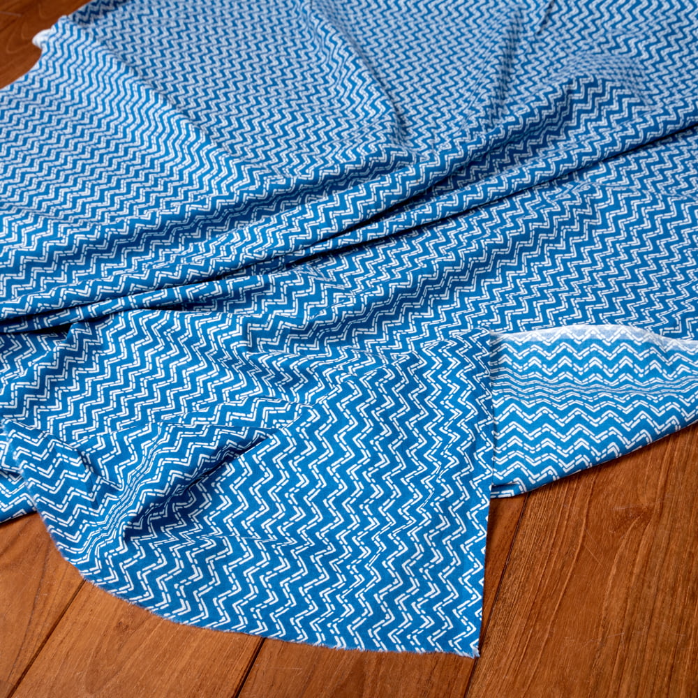 〔1m単位切り売り〕南インドのジグザグ模様 シェブロン・ストライプ布〔約106cm〕 - ブルー x 5個