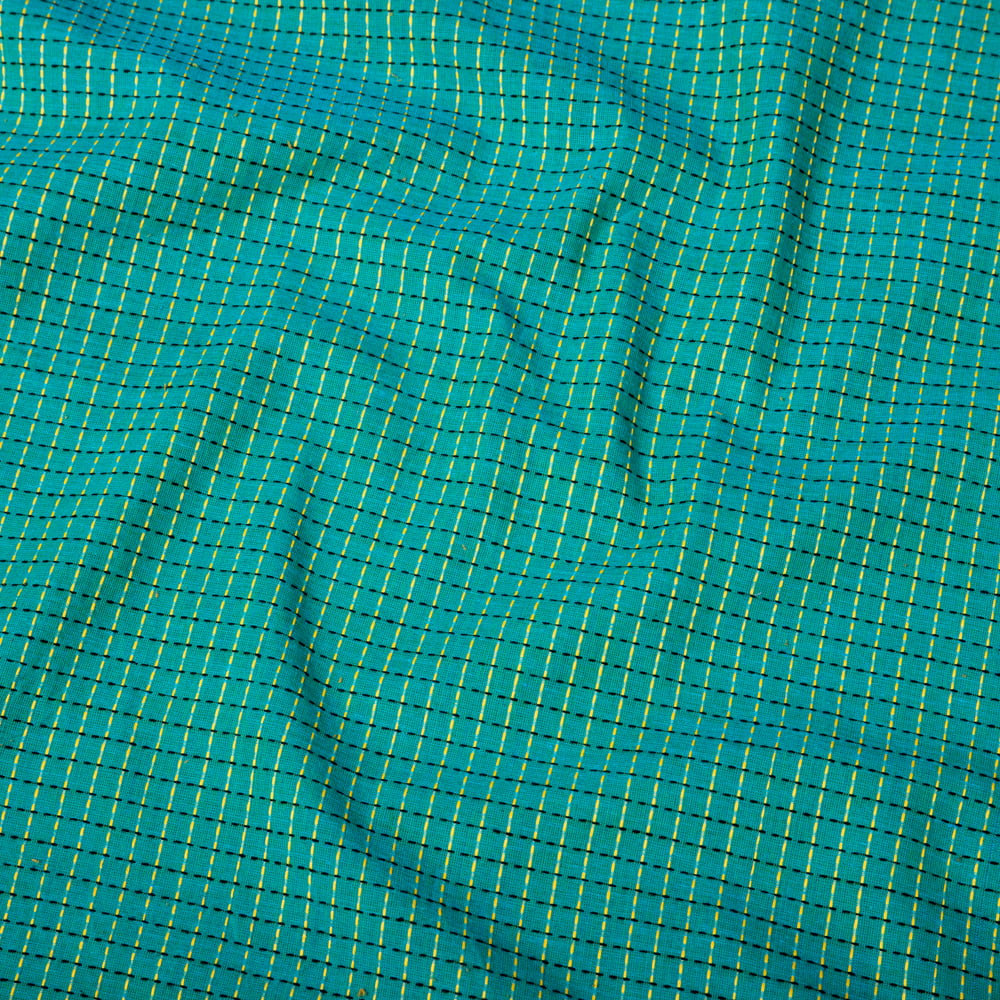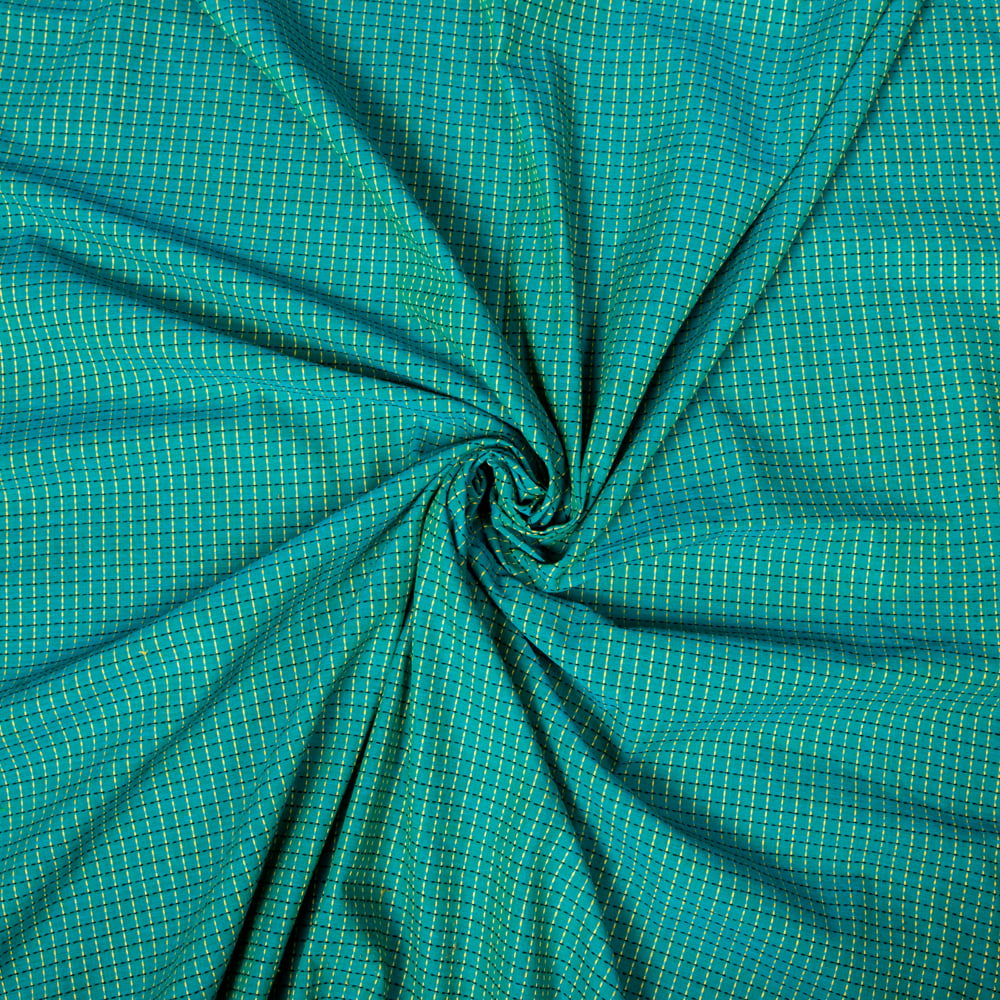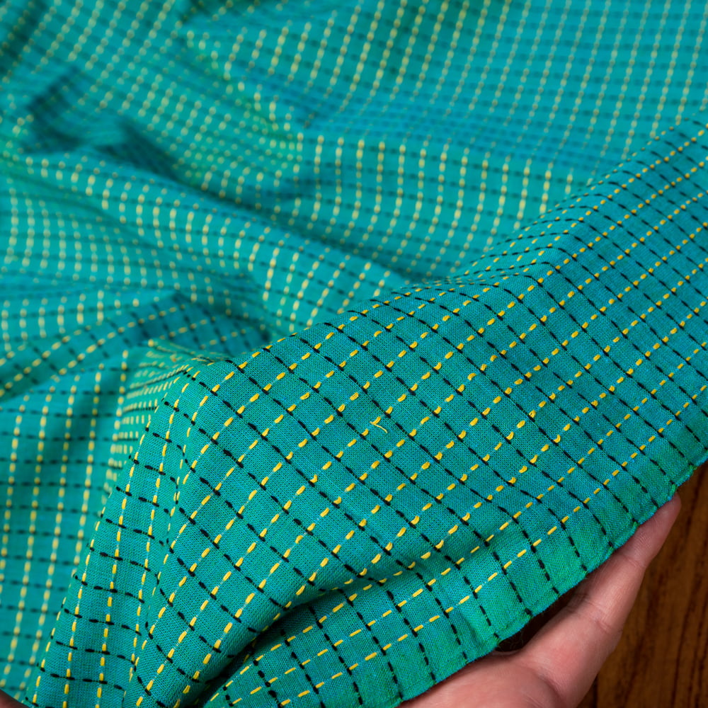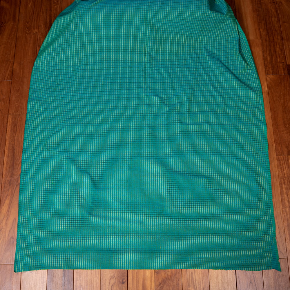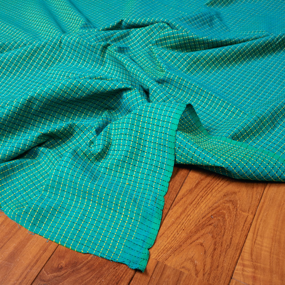 〔1m単位切り売り〕南インドのシンプルコットン チェック模様布〔約106cm〕 - グリーン x 5個
