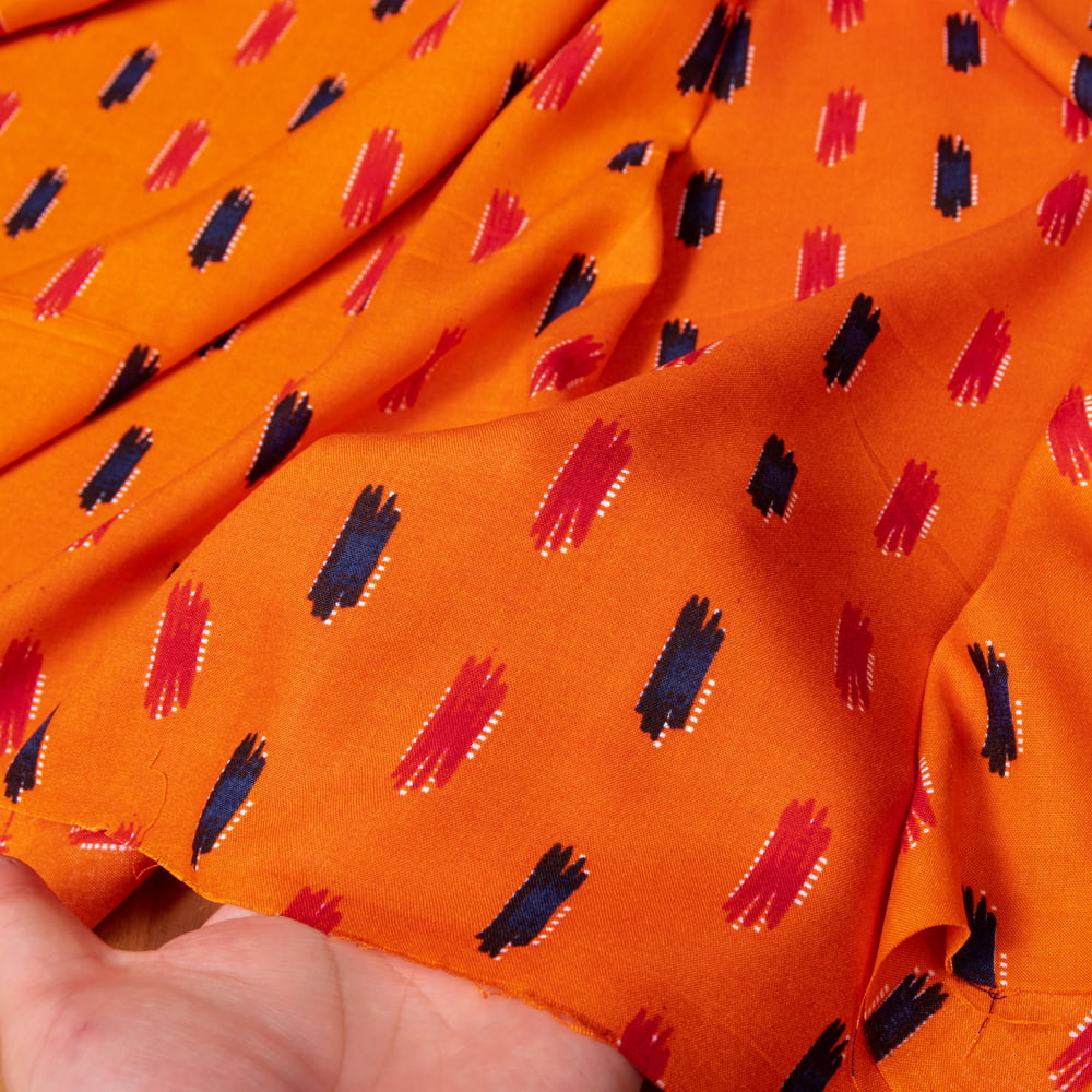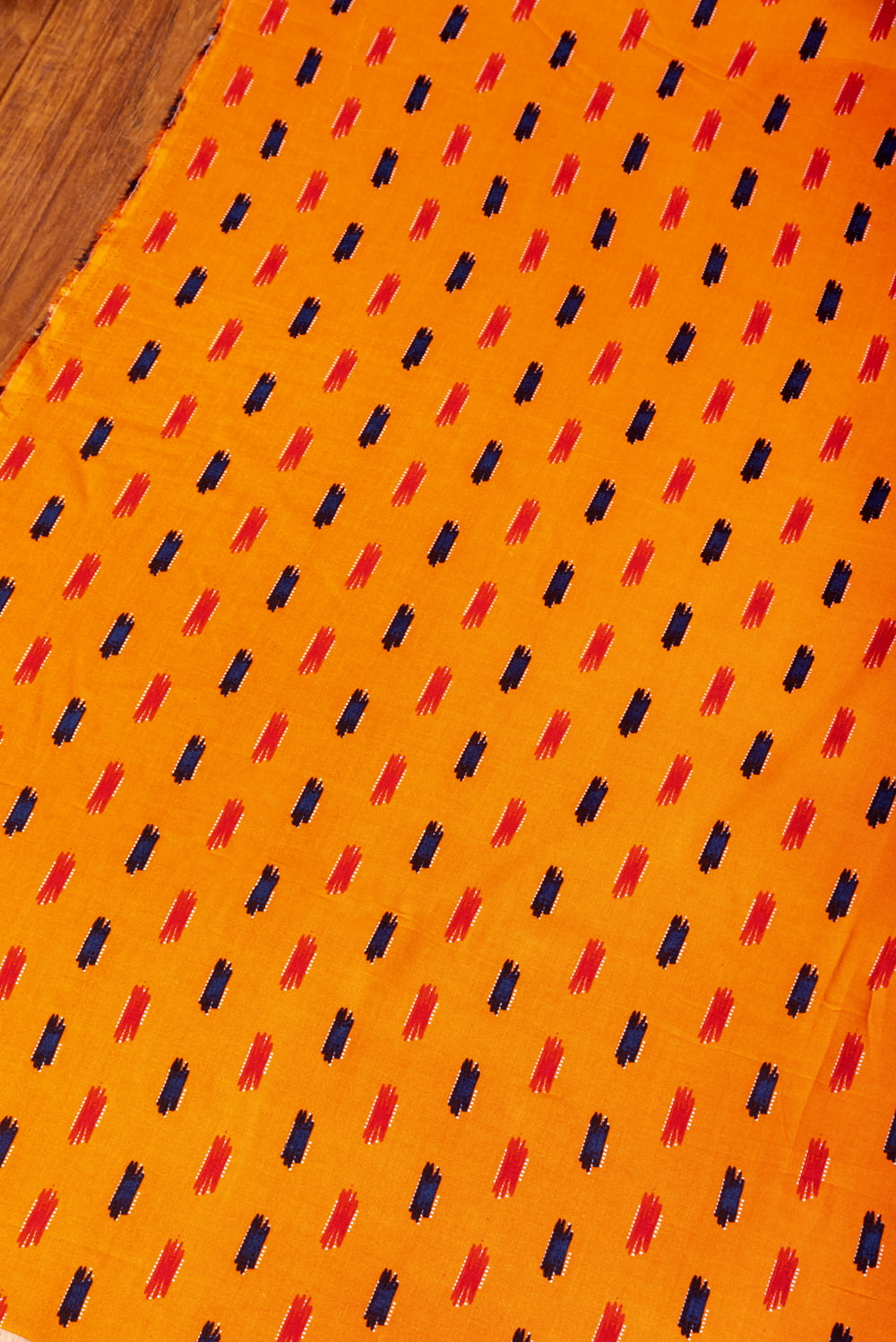 〔1m単位切り売り〕南インドの絣織り風パターン布〔幅約109.5cm〕 - オレンジ系 x 5個