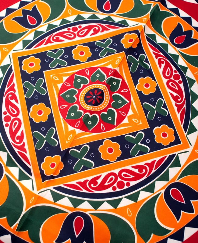 インドの伝統模様がドカンとプリントされた、色鮮やかな布地です。飾り布としての存在感は抜群です。■化繊で丈夫!!