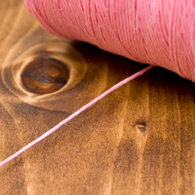 ![ワックスコード - 蝋引き糸 - 440g - ピンク[2番 標準] 3 - 質感がわかるように近寄ってみました。蝋でコーティングされているので、とてもしっかり丈夫なのがわかります。たまにロウの塊がありますが問題ありません。](https://www.tirakita.com/ti_nfacs/Photos/ti_nfacs_12_3b.jpg)
