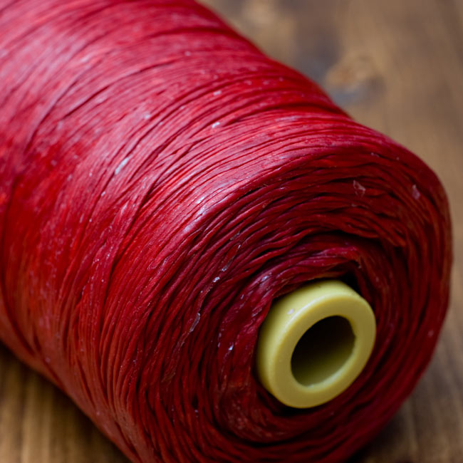 ワックスコード - 蝋引き糸 - 440g - 赤[2番 標準]の商品写真 2枚目 糸を出してみました。しっかりした質感なのでとても丈夫にお使いいただけます。