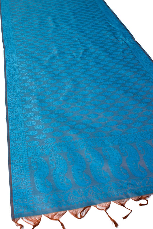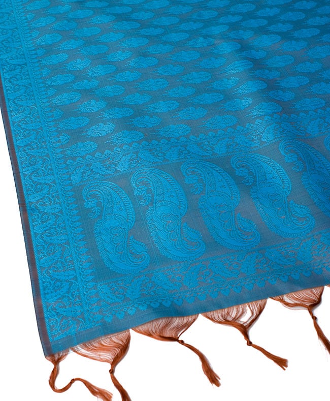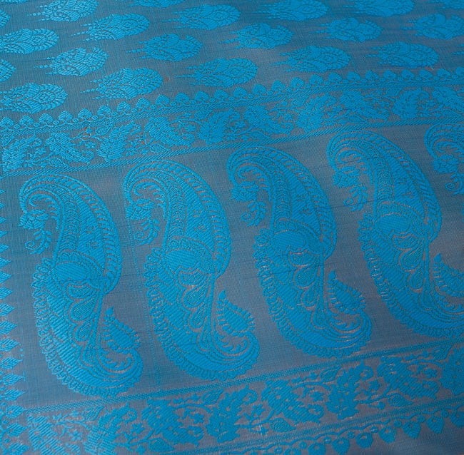 光の角度によって模様が浮き出る、インドの伝統模様「ペイズリー」柄のスカーフサイズのファブリックです。シルクに似た質感と光沢で、光のあたる角度によって様々な光沢を見せます。大きさは約160cmX55cmと両腕を広げたくらいの細長い長方形です。■装飾用の布地として
