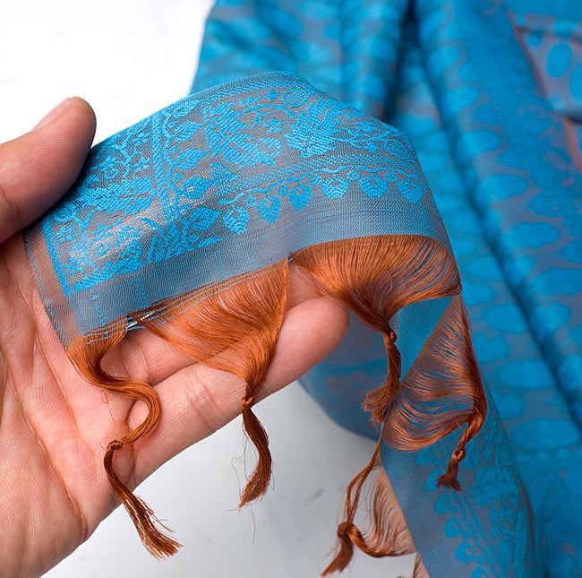 こちらは大変綺麗な布地ですので、スカーフとして使いたい所ですが、引っかかりやすい生地のため、スカーフとしてはあまり向いていません。スカーフとしてももちろんご利用頂けますが、室内の装飾、デコレーション、飾り生地としてのご利用をお勧めしております。布地を部屋に吊るす、テーブルセンターとして、飾りたい物の下に置いてなど、様々なシーンでご利用いただける便利な一枚です。