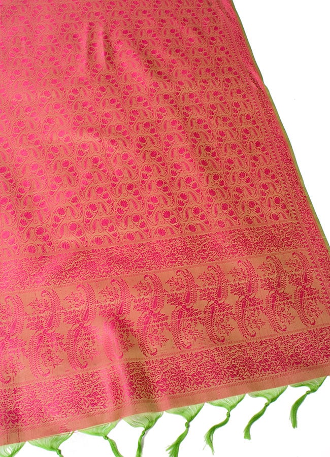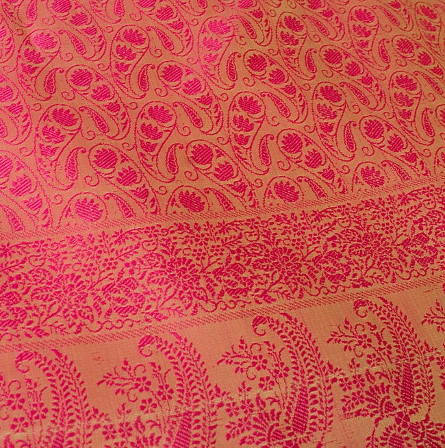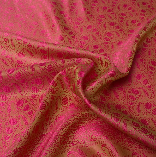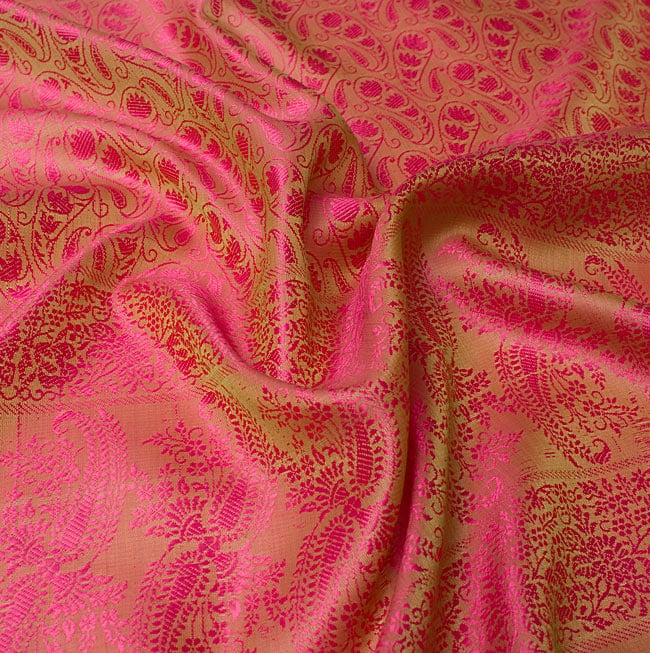 光の角度によって模様が浮き出る、インドの伝統模様「ペイズリー」柄のスカーフサイズのファブリックです。シルクに似た質感と光沢で、光のあたる角度によって様々な光沢を見せます。大きさは約160cmX55cmと両腕を広げたくらいの細長い長方形です。■装飾用の布地として