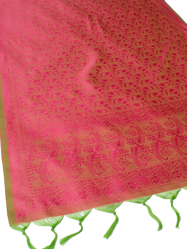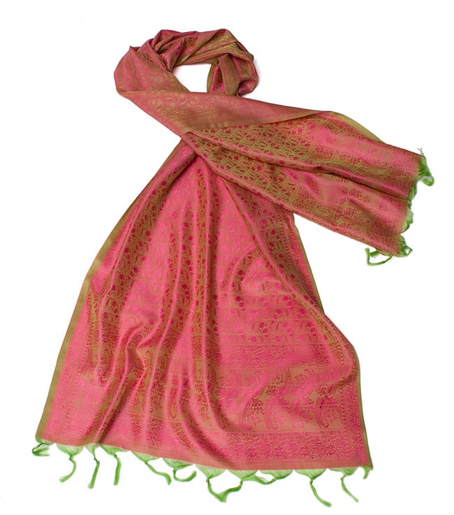 こちらは大変綺麗な布地ですので、スカーフとして使いたい所ですが、引っかかりやすい生地のため、スカーフとしてはあまり向いていません。スカーフとしてももちろんご利用頂けますが、室内の装飾、デコレーション、飾り生地としてのご利用をお勧めしております。布地を部屋に吊るす、テーブルセンターとして、飾りたい物の下に置いてなど、様々なシーンでご利用いただける便利な一枚です。