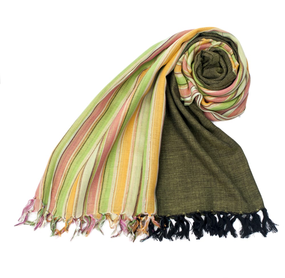 インドのカラフル布 ストール スカーフ ボーダーストライプ柄 200cm×95cm〕 インド伝統のルンギー