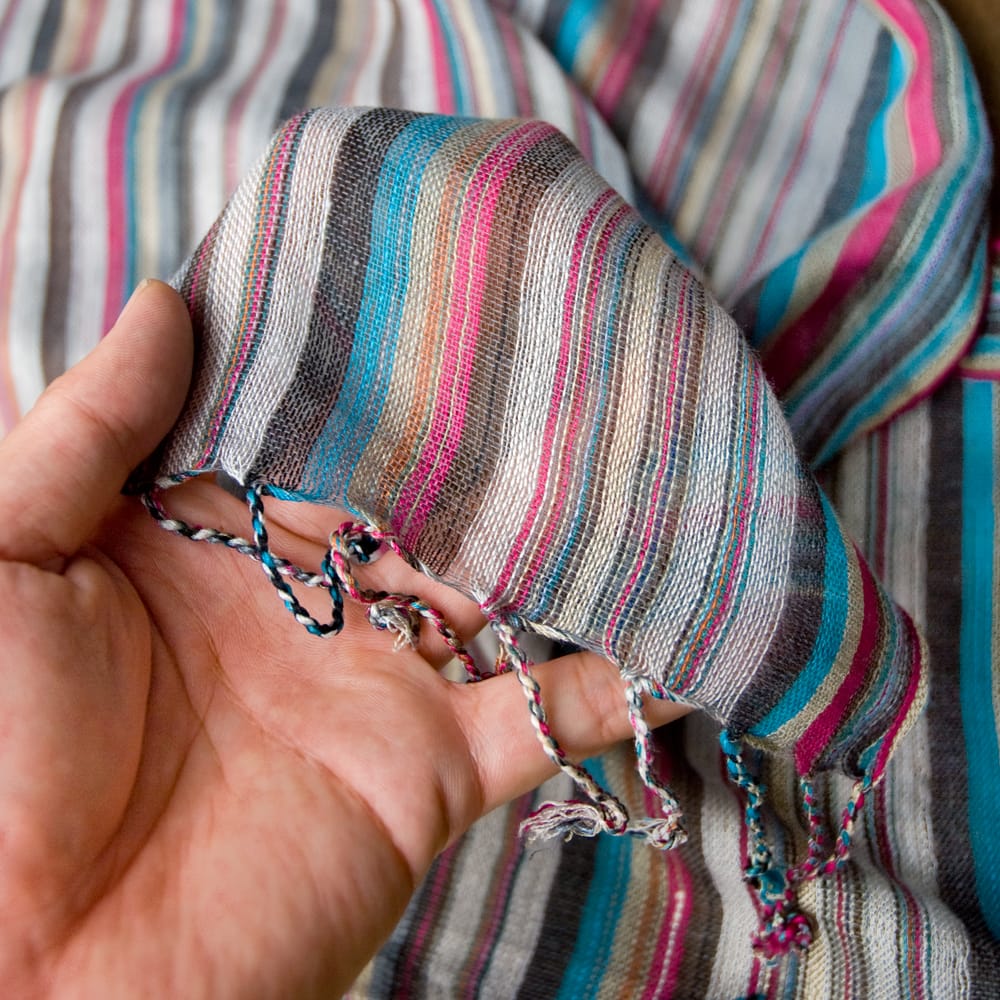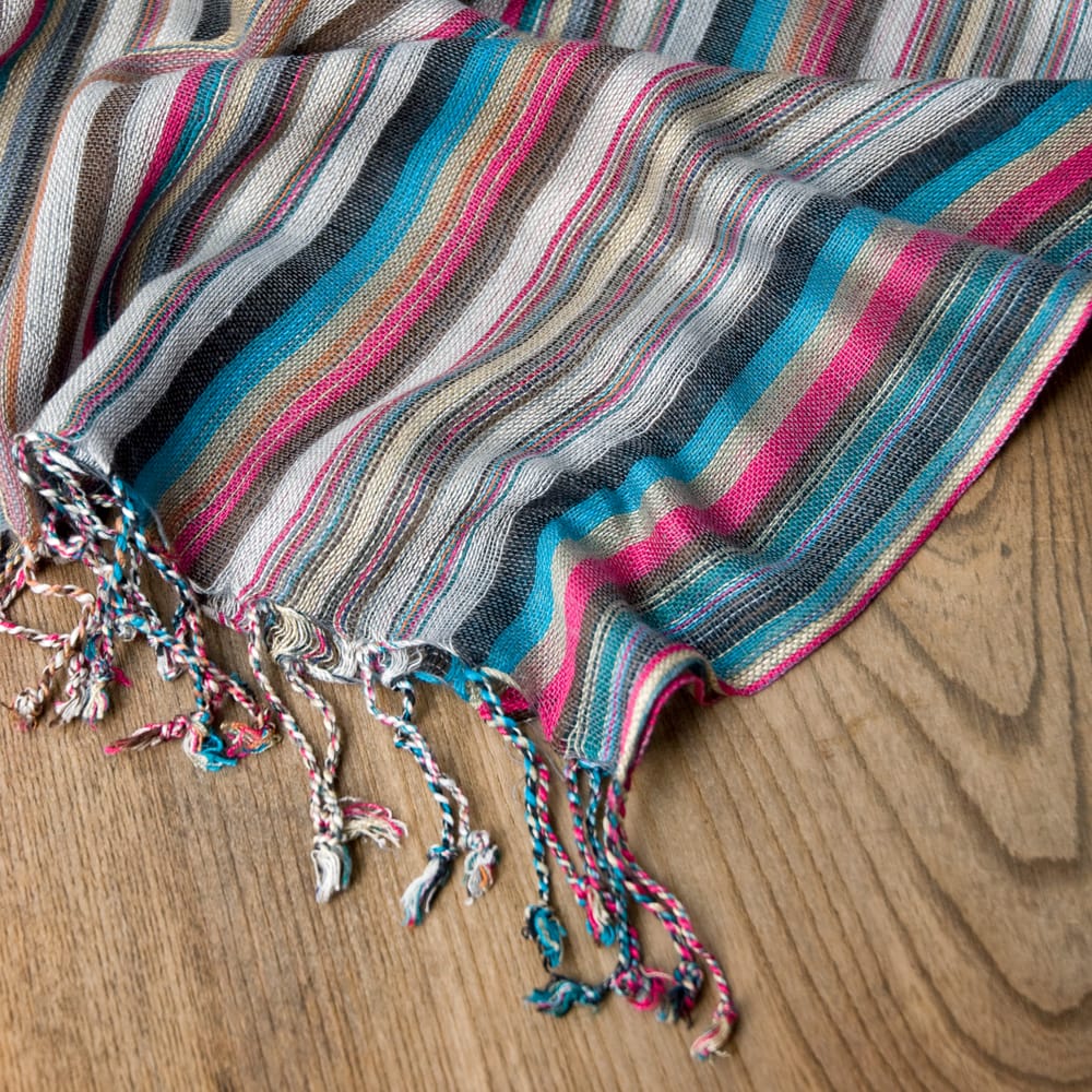ストライプ模様が綺麗です。フリンジ付きが嬉しいですね。