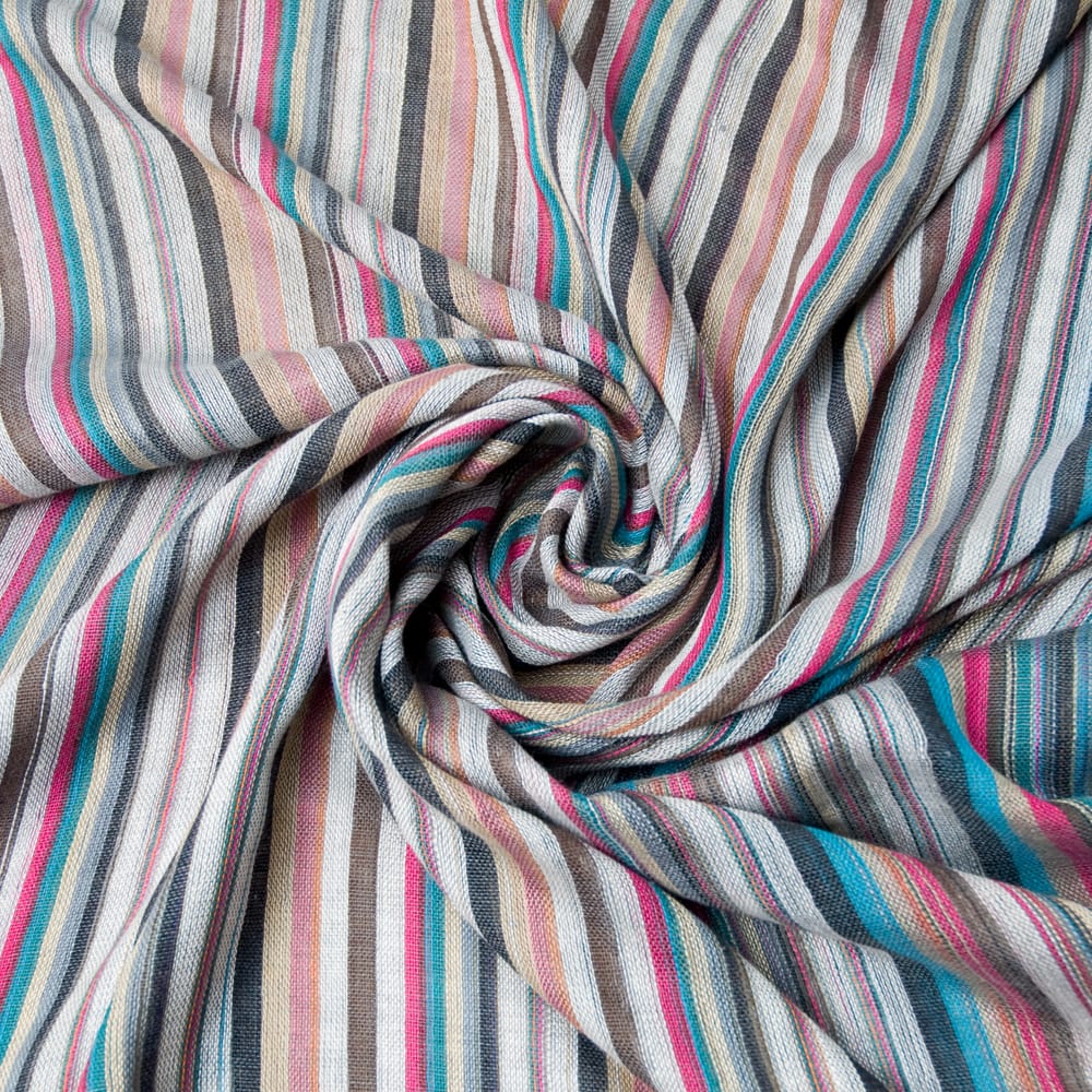 ここまで色合わせが豊富で選べ、配色が綺麗なストライプのストールはなかなか見かけませんので購入しました。商品写真の様に軽く透ける感じで初夏まで使えますし高級感もあるので大変気に入りました。少し染料の香りがしますが最初のうちだけではないかと思いますのでこちらの評価4にしました。