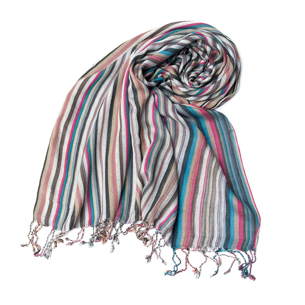 カラフルストライプスカーフ -グレー×マルチ系