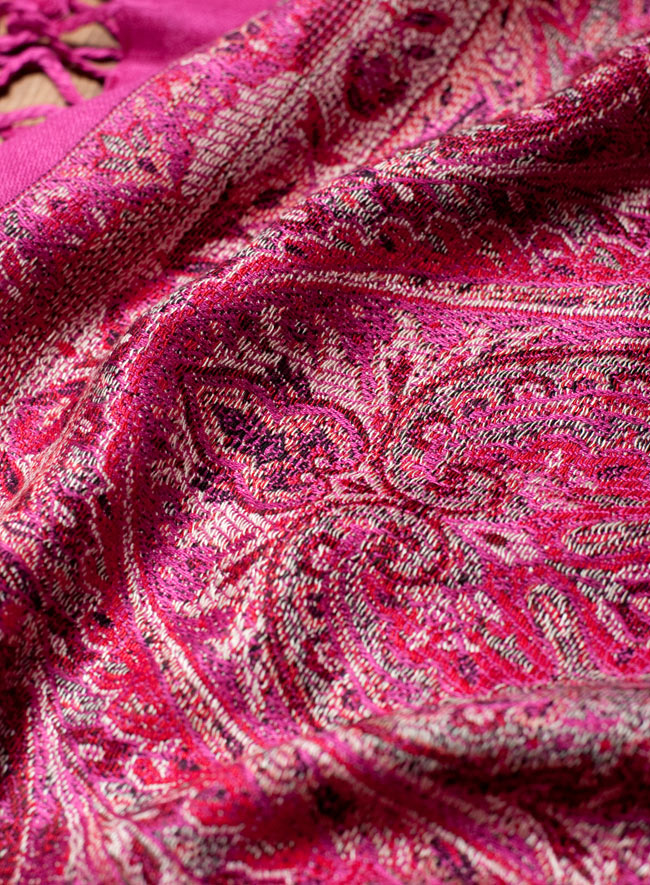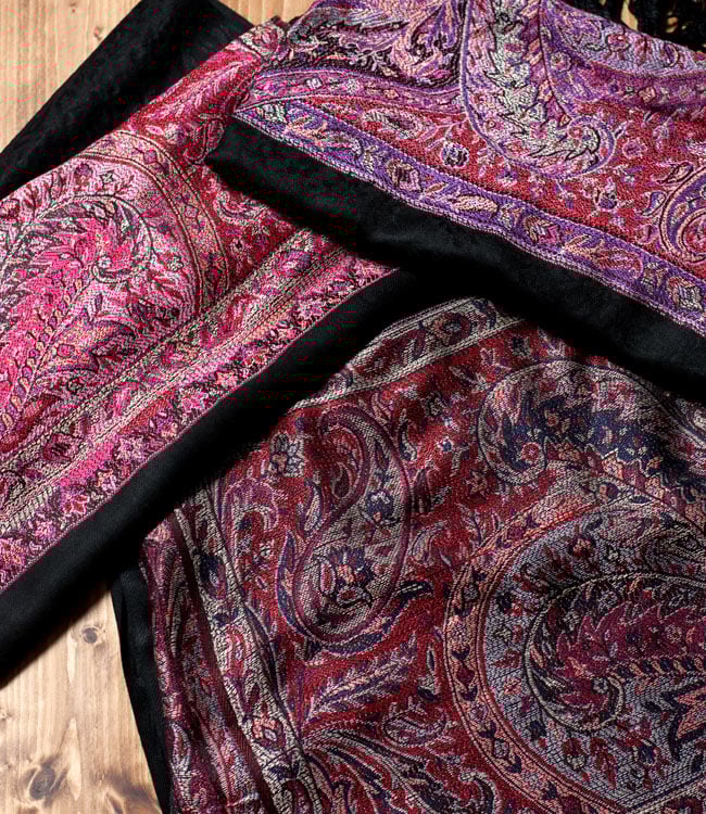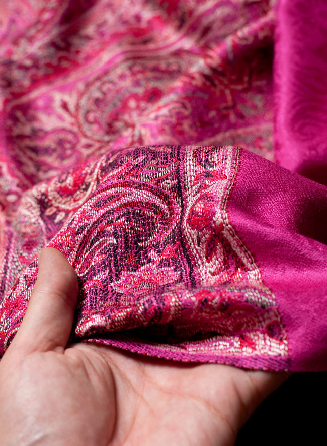 パシュミナ カシミア100% 大判手織りストール - パープル