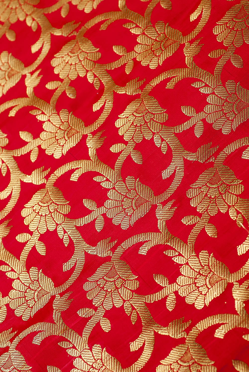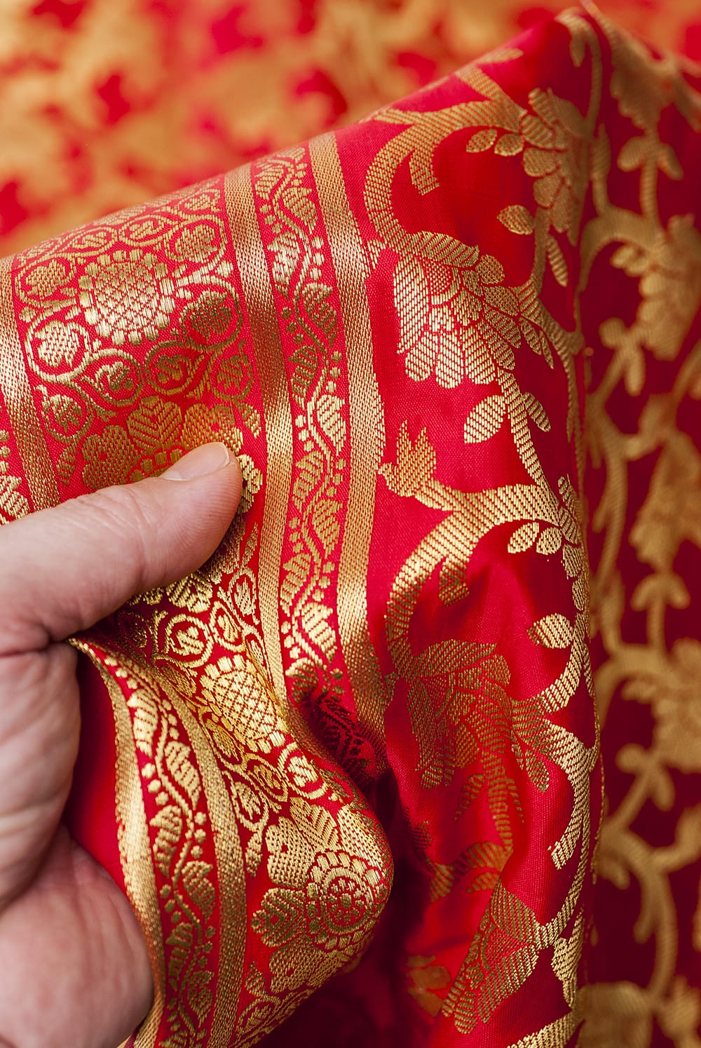 (大判)金色刺繍のデコレーション布 - 唐草・朱色