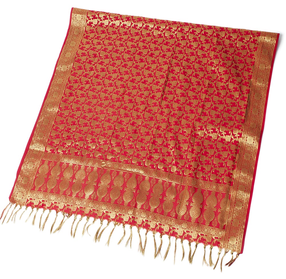 半分に折ったところの写真です。倍の長さがあります。縁には金色の、インド伝統刺繍が施されています。