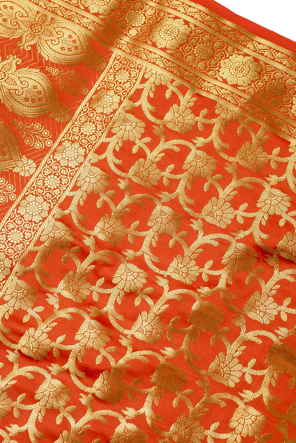 半分に折ったところの写真です。倍の長さがあります。縁には金色の、インド伝統刺繍が施されています。