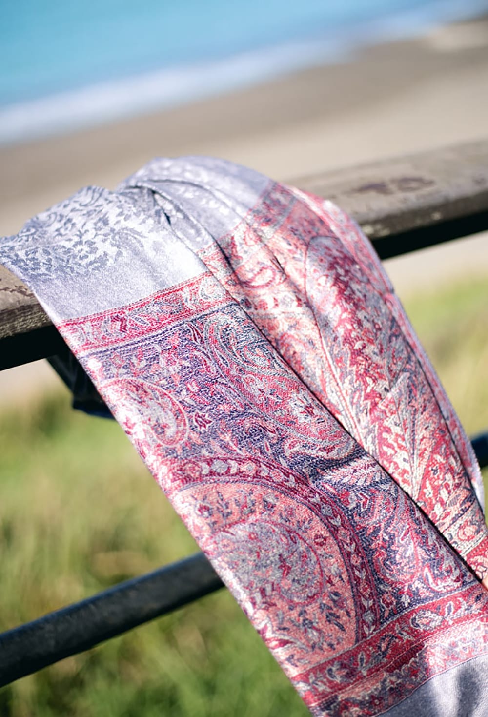 光沢感のある美しい布地にペイズリー柄が映えます。