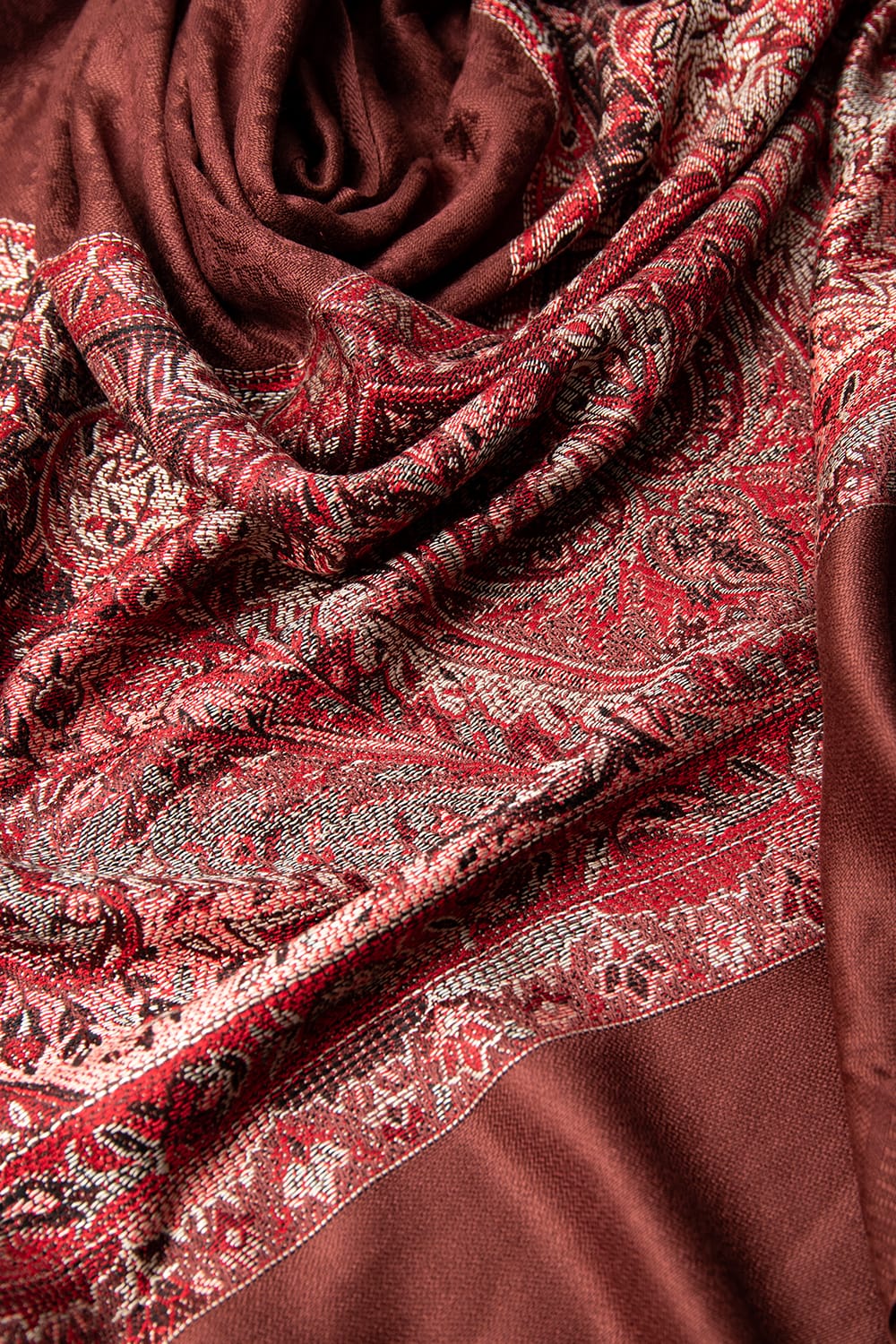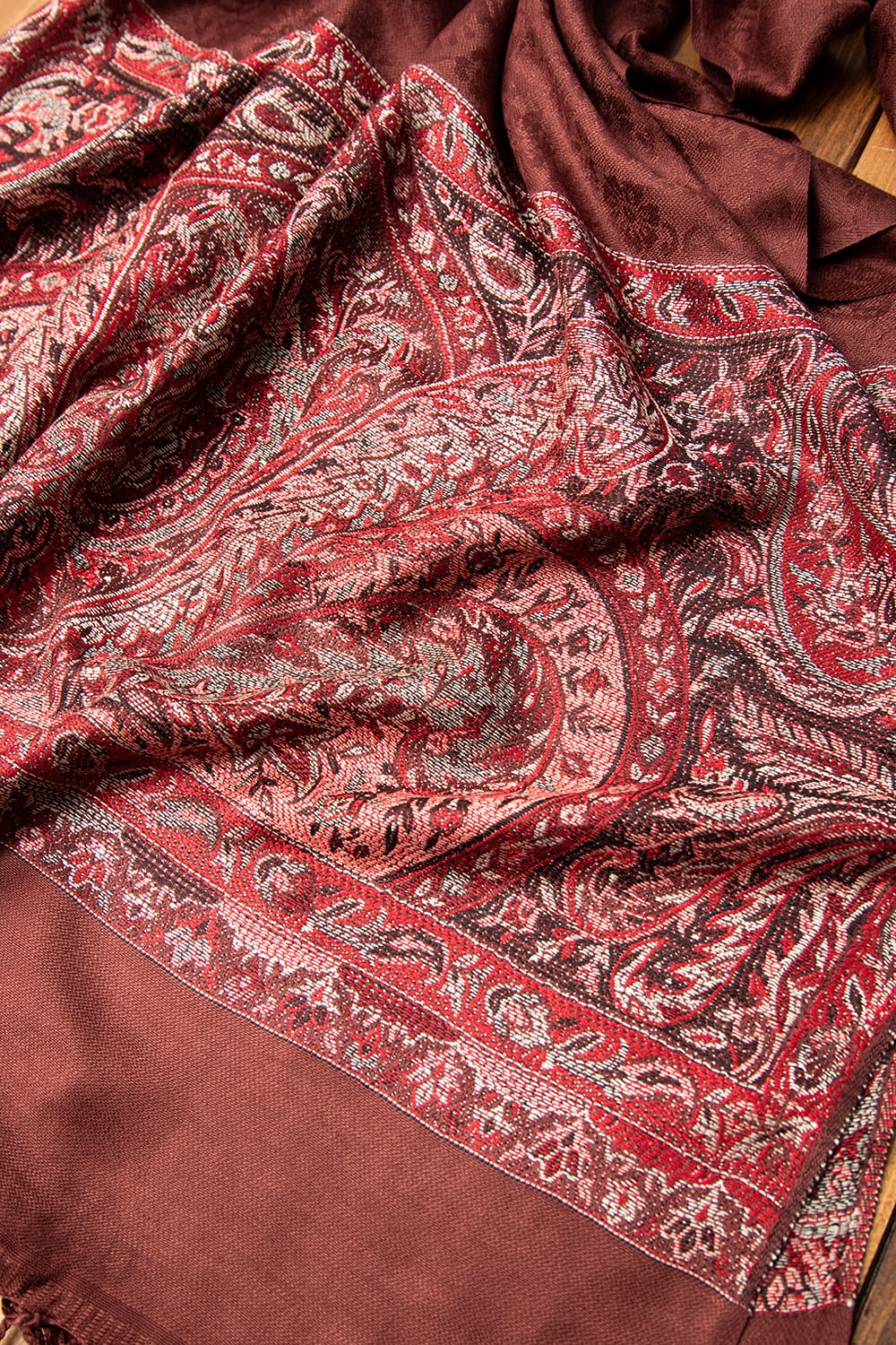 〔200cm×70cm〕インドの伝統柄 ペイズリーショール - ブラウン
