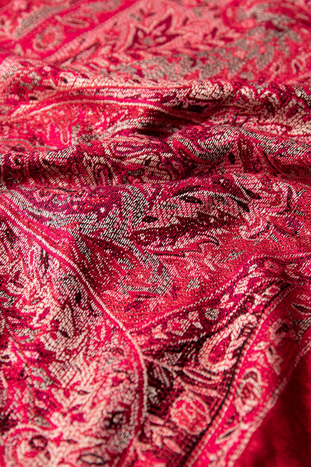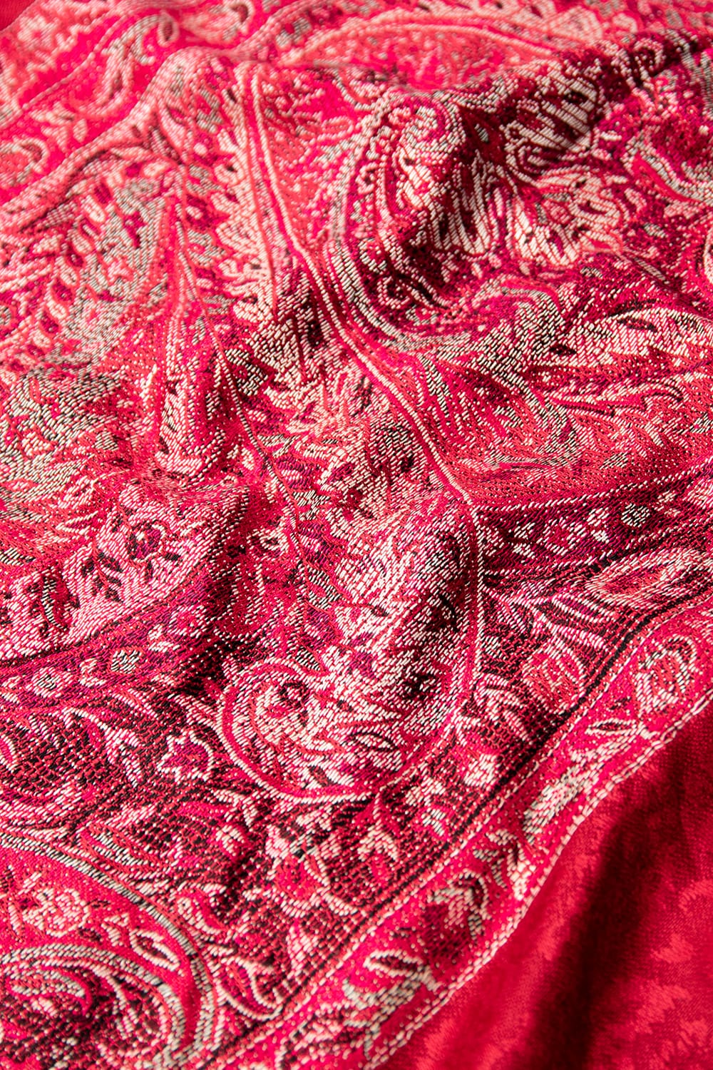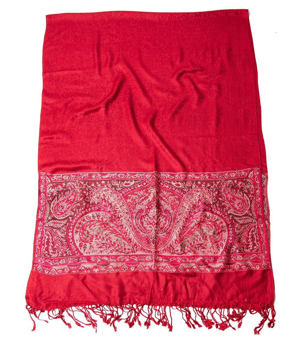 〔200cm×70cm〕インドの伝統柄 ペイズリーショール - レッド + ピンク