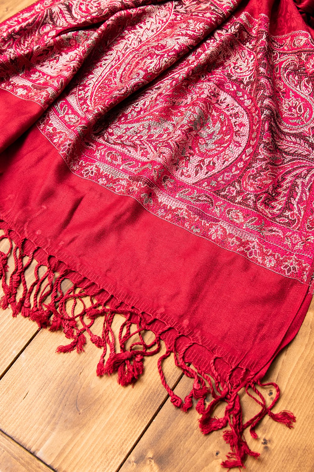 〔200cm×70cm〕インドの伝統柄 ペイズリーショール - レッド + ピンク 通販店