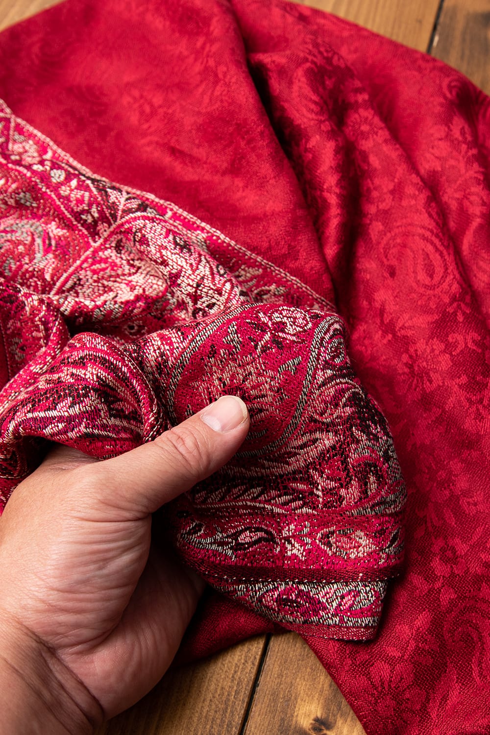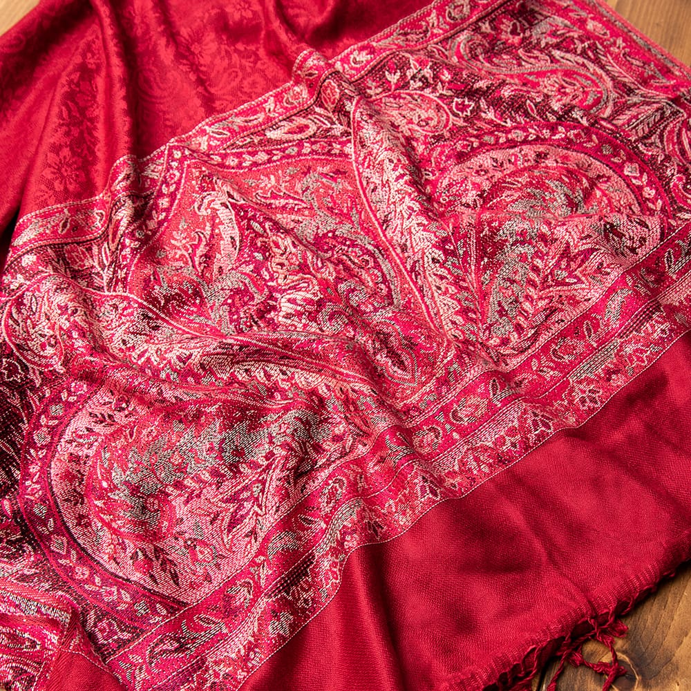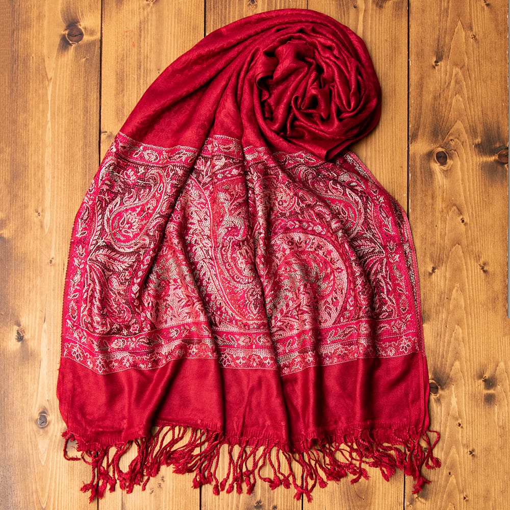 〔200cm×70cm〕インドの伝統柄 ペイズリーショール - レッド + ピンクの類似商品