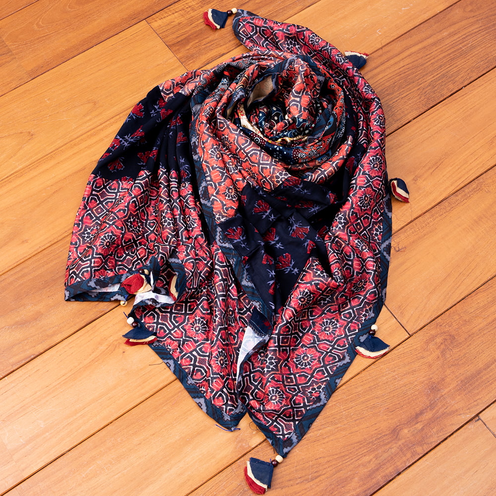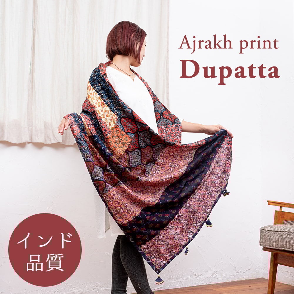 【インド品質】 1点もの インドの伝統柄 アジュラックプリント ドゥパッタ ストール【約76cm×224cm】の同一カテゴリ商品