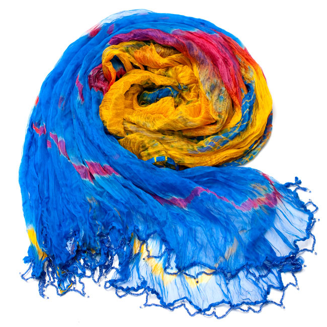 インドの薄ショール クリンクル タイダイドゥパッタ - ブルーの類似商品