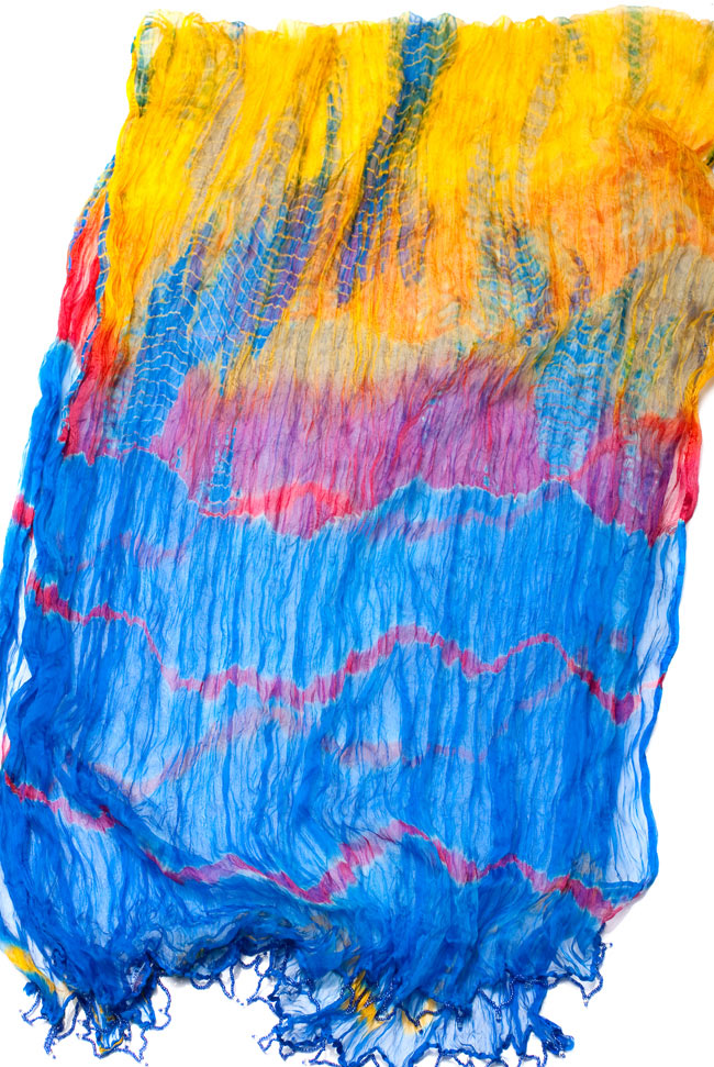 インドの薄ショール クリンクル タイダイドゥパッタ - ブルー
